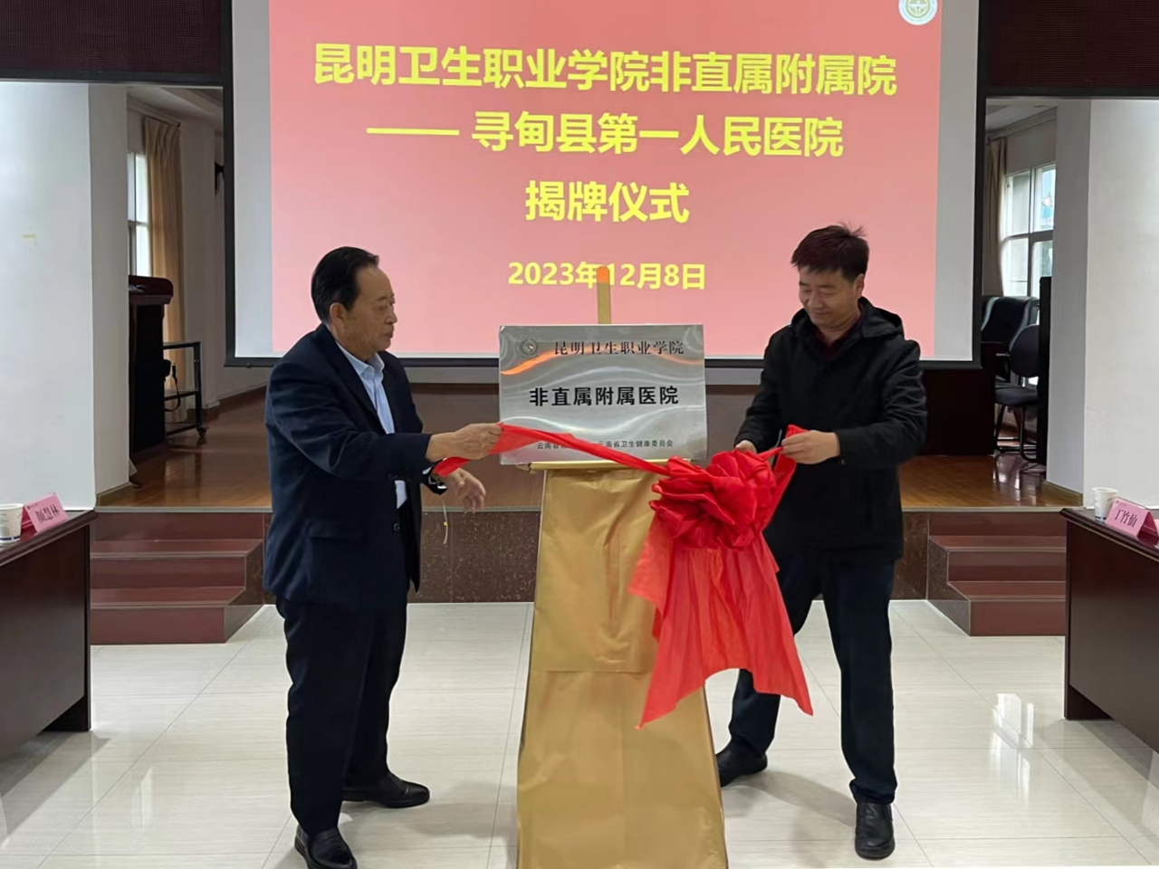 2023年12月8日上午,KY开元在寻甸县第一人民医院,举行了KY开元集团官网入口非直属附属医院的授牌仪式。寻甸县卫生健康局副局长、县中医药管理局局长周顺云,云南泓旻教育投资集团董事长、KY开元集团官网入口理事长龙正昌,寻甸县人民医院党委书记周亚菲、党委副书记李国俊、副院长唐光勇、副院长马德付、副院长杨绍坤,KY开元集团官网入口副院长张尤松副教授、临床学院院长张群智教授、护理学院院长蒋淑昆教授、教务处处长孟州令、实习处副处长颜慧林等领导出席授牌仪式,学院及医院相关处室、科室干部参加了仪式。授牌仪式由寻甸县第一人民医院副院长唐光勇主持。