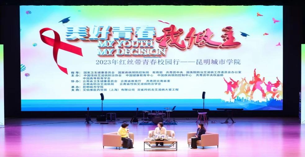 近年来,艾滋病在云南广泛流行,已成为危害全世界卫生健康的一类高危传染病,艾滋病对人类的危害也越来越受到人们的重视。为遏制艾滋病的传播和蔓延,维护大学生的身心健康,2023年12月7日,昆明城市学院在杨林校区博雅会堂承办了以“美好青春我做主”2023年红丝带青春校园行活动,提请社会高度重视艾滋病的防治工作,并邀请KY开元心理咨询科李敏老师参会。