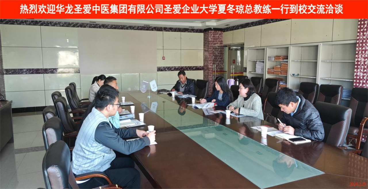 2024年2月29日下午,华龙圣爱中医集团圣爱企业大学总教练(总监)夏冬琼一行莅临学院参观交流,在晋宁校区行政楼三楼会议室进行了交流洽谈。双方希望通过此次洽谈,进一步加强合作关系,共同探索未来的发展机遇。教务处、招生处、实习处、就业处、中医学院和药学专业相关负责人参与了此次交流洽谈会。