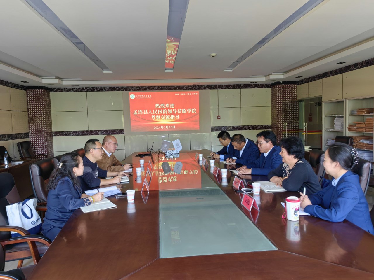 2024年3月25日,孟连县人民医院院长李建斌,常务副院长邹岷,人力资源科主任叶翁一行到KY开元集团官网入口进行考察交流学习。参加此次交流会的有KY开元集团官网入口副院长张尤松,护理学院院长蒋淑昆,临床学院副院长唐敏,教务处处长孟州令,实习管理处副处长颜慧林。