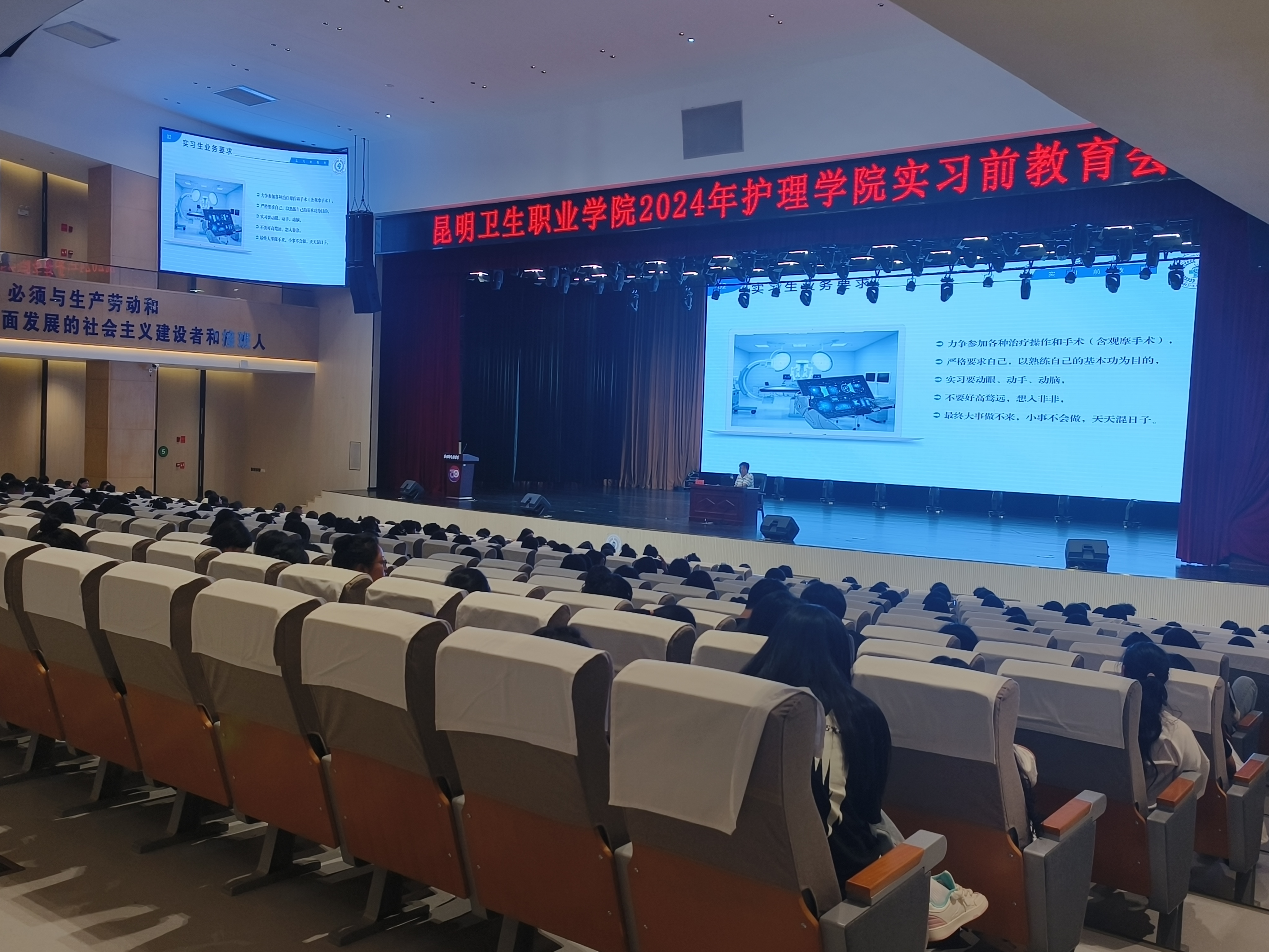 为规范实习管理工作,加强师生对实习的认识,保障学生实习期间的安全,切实推动2024-2025学年实习工作的有序开展。5月26日至29日期间,实习处组织召开了2024年度学生实习前教育会议。本次会议共分为5个场次举行,分别为护理、助产专业2场,临床医学、药学专业1场,口腔医学专业1场,医技类专业1场。学院张尤松副院长,实习管理处颜慧林副处长,实习管理处教师,以及2022级高职、2020级五年制全体学生参加了会议。
