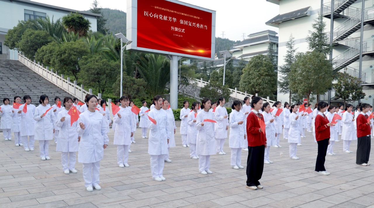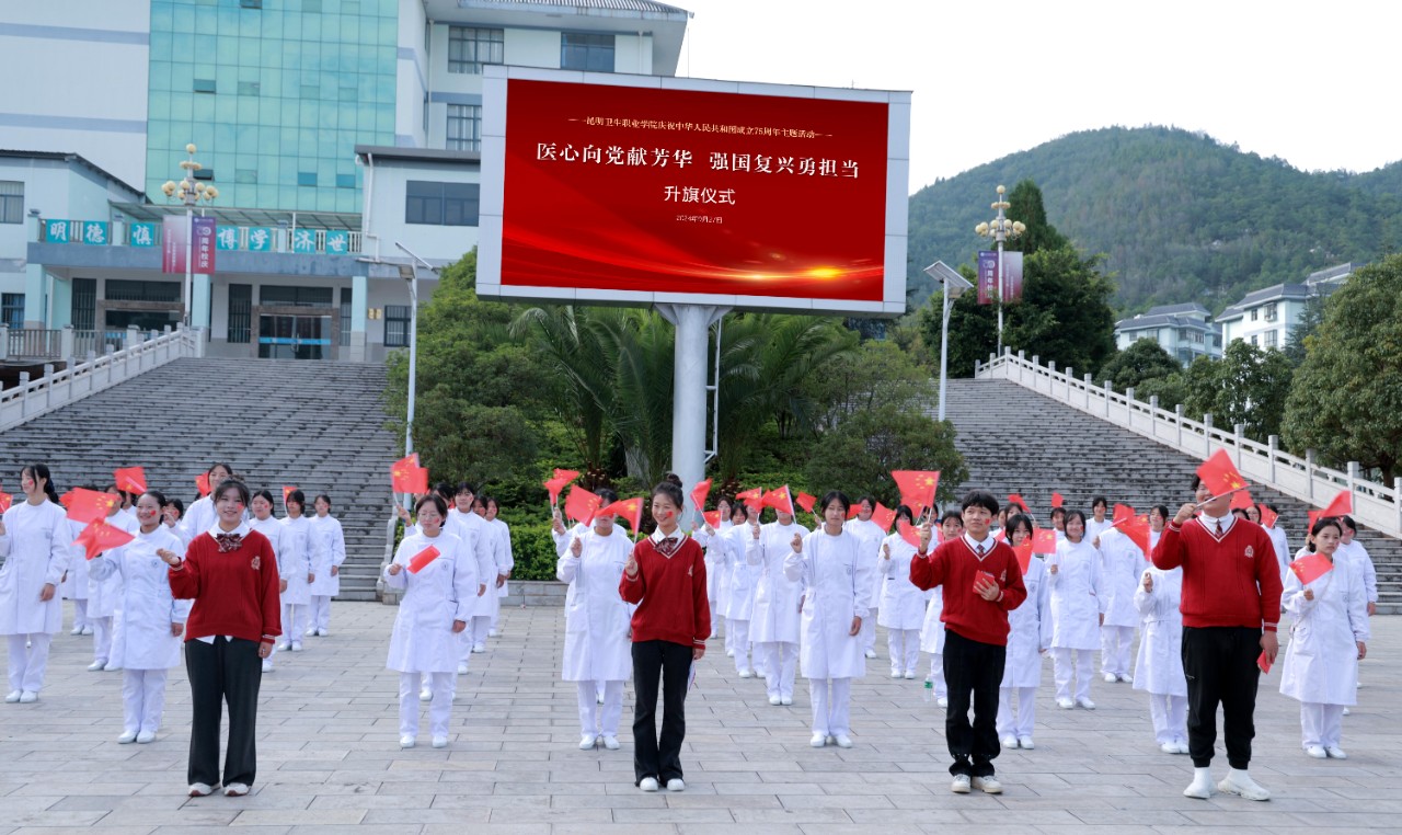 副院长张尤松在致辞中回顾了新中国成立75年来的光辉历程和取得的伟大成就。他强调,站在新的历史起点上,昆卫师生要以更加饱满的热情和坚定的信念,积极投身守护人民健康的事业。他鼓励老师们将教育家精神转化为自己的思想认同、内在要求和实际行动,坚持立德树人根本任务,坚持不懈用习近平新时代中国特色社会主义思想铸魂育人,做学生健康成长的指导者和引路人;希望同学们将个人成才融入国家和社会的发展大局之中,立报国强国大志向,做挺膺担当的奋斗者,不断学习积累、坚持独立思考、敢于面对挑战,在助力健康中国建设中保持鲜亮底色、诠释好昆卫担当。