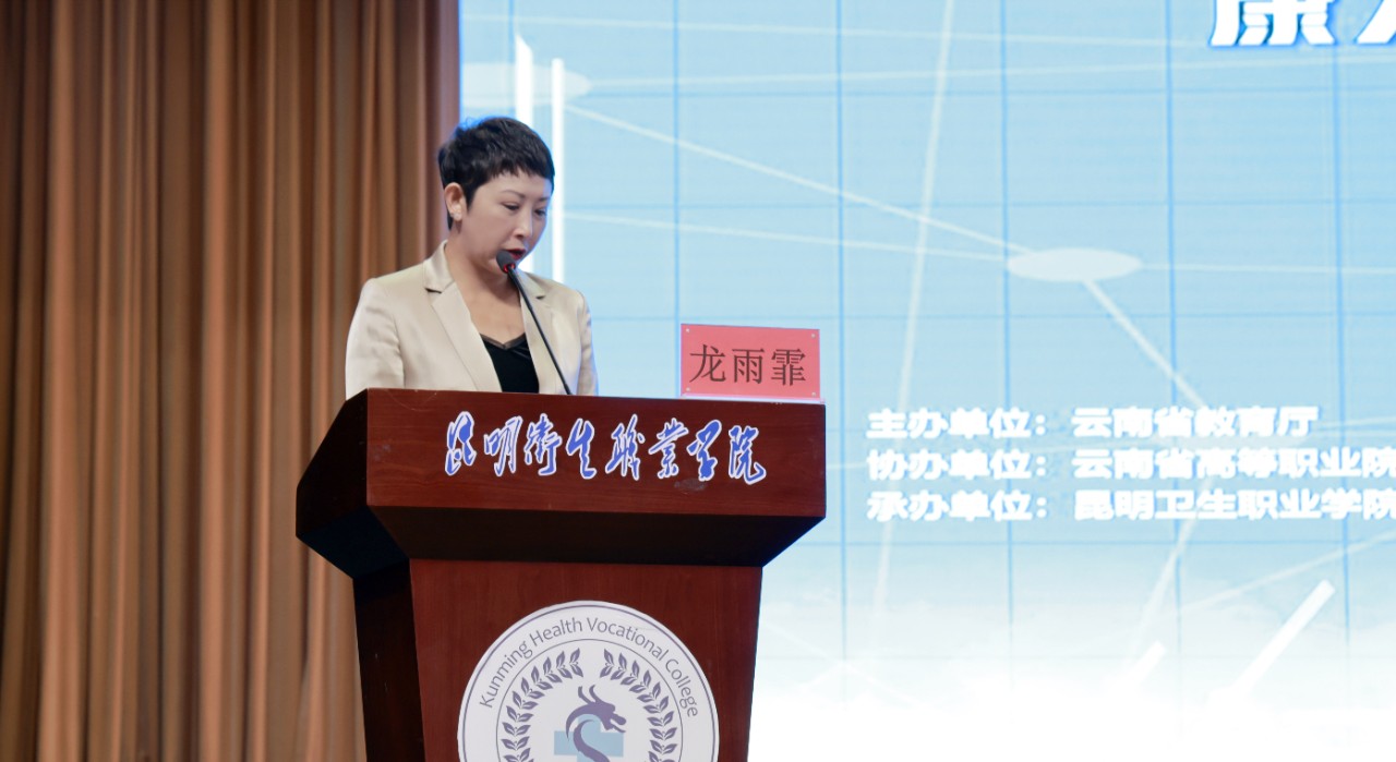 党委副书记、院长龙雨霏致欢迎辞。她首先代表学院向出席开幕式的领导、专家以及参赛选手表示热烈的欢迎,同时对省委教育工委、省教育厅对学院的信任表示衷心的感谢,承诺学院将全力以赴,精心做好赛事服务保障工作,确保赛事正常、有序、规范开展。她表示,在各级领导的关心支持下,学院立足昆明、融入云南、服务“老少边”、辐射东南亚,积极对接卫生健康产业发展需求,始终把提高教育教学质量作为树百年民校的根本,致力于服务区域医疗卫生事业发展,办学30年来,已累计为社会培养专业人才13万余人。学院将以建校30周年为新的起点,不断加大教育投入,努力打响教育品牌,完善内部治理体系、持续优化教师队伍、稳步提高教育质量,为我省医学职业教育事业发展培养更多实用型、技能型专门人才。