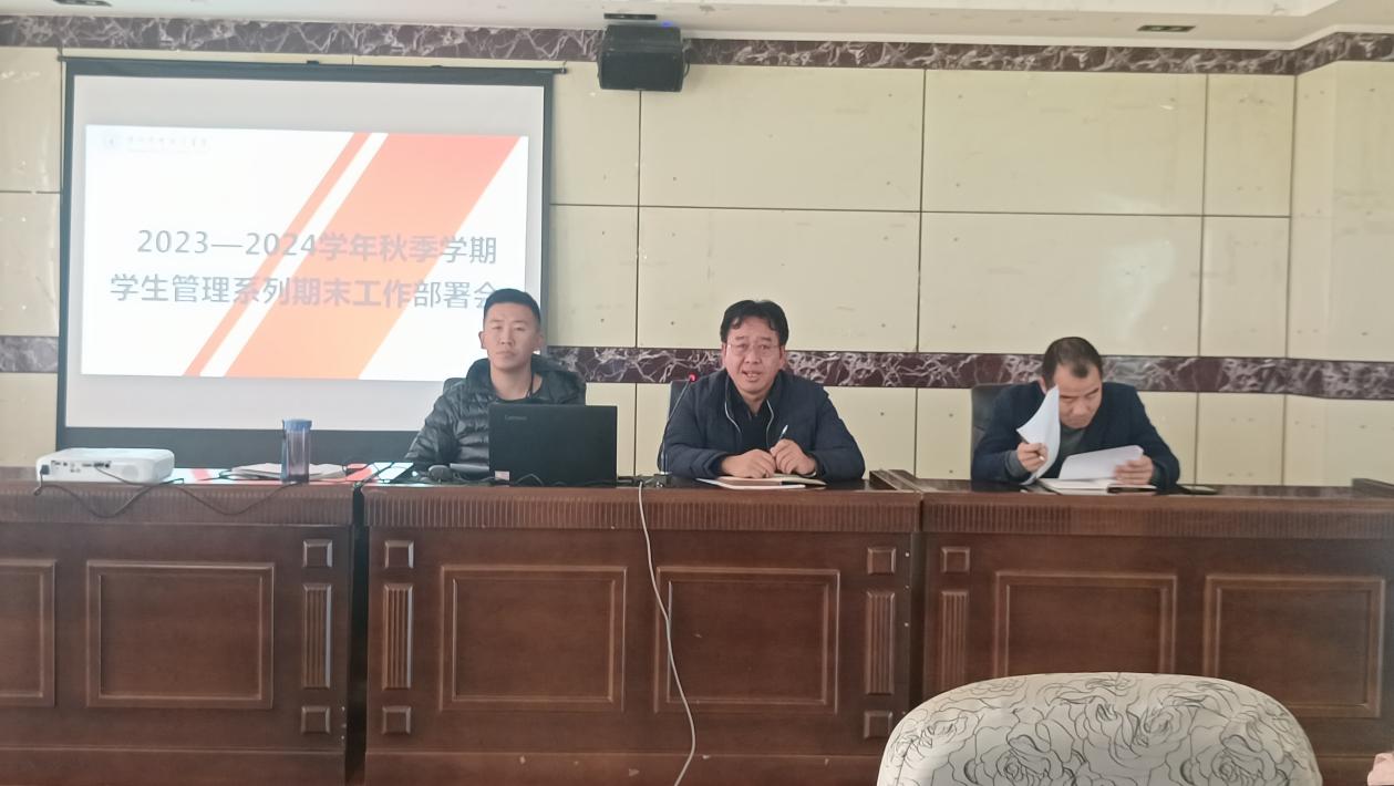 为做好学期末相关工作,大学生工作部于2023年12月11日召开学生管理系列期末工作部署会,参加会议的有学生管理副院长张尤松同志、大学生工作部负责人郭佶颖同志、大学生工作部副部长王冬同志、各二级学院学生管理副院长、各学管办人员和全体辅导员。