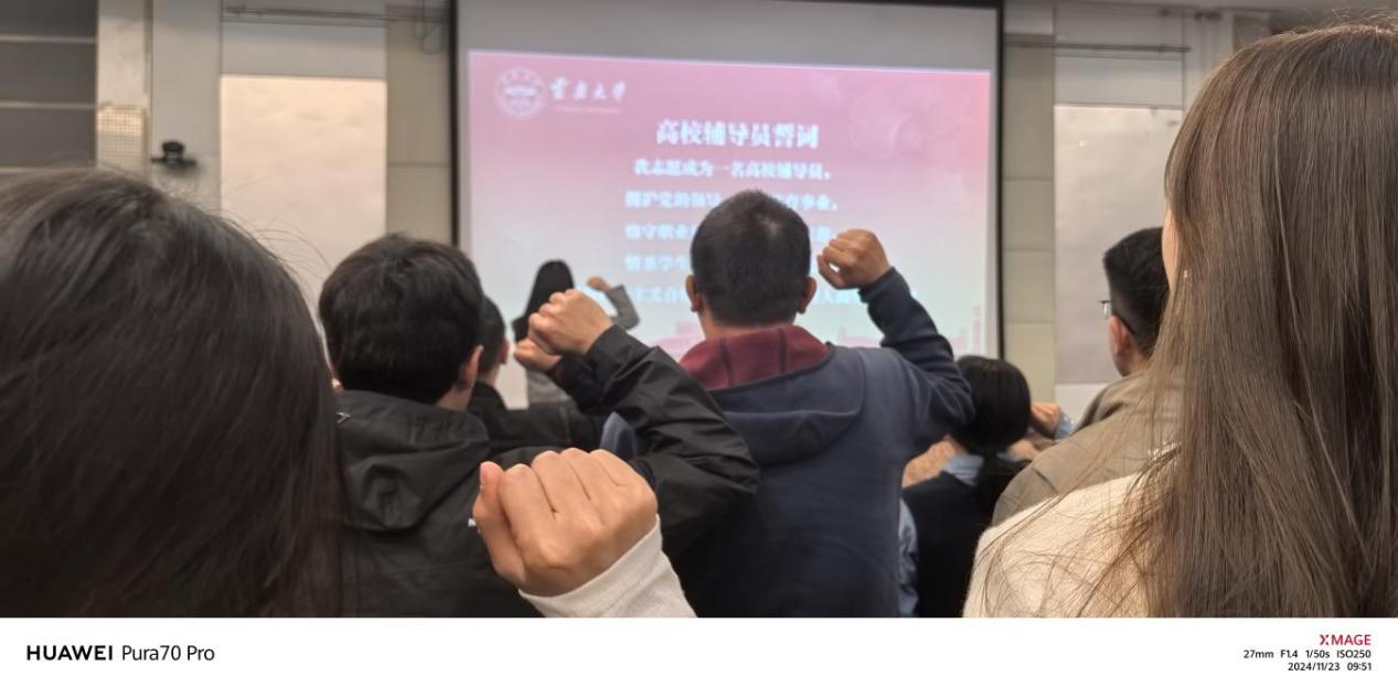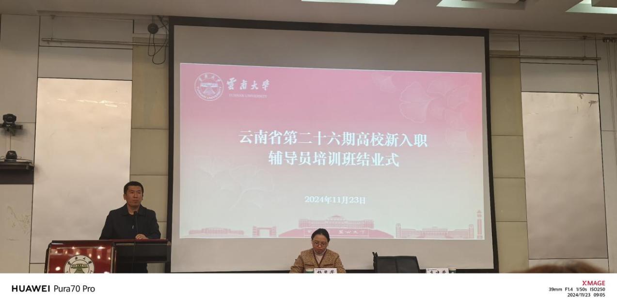为深入学习贯彻习近平新时代中国特色社会主义思想和党的二十届三中全会精神,推动落实全国全省教育大会,2024年11月19日-23日,学院新入职辅导员夏玲、朱倩影作为此参培人员,赴昆明云南大学(东陆校区)参加云南省第二十六届高校新入职辅导员培训班。