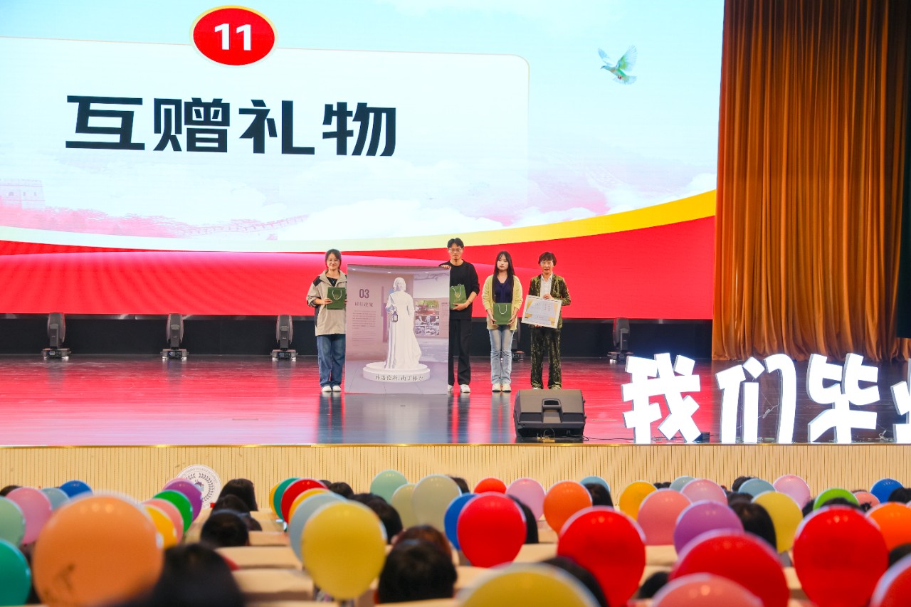 院长龙雨霏与毕业生代表互赠礼物,一份期许,一份感恩,在此刻温暖交汇。