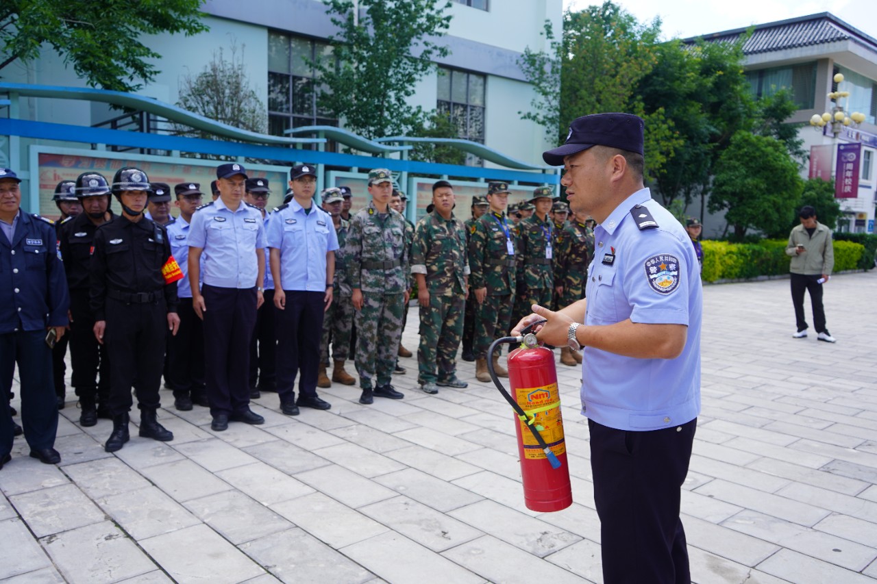 培训中,干警与保卫人员、学生志愿者积极互动,及时纠正动作,确保操作规范。活动还包含了灭火器使用的说明讲解。