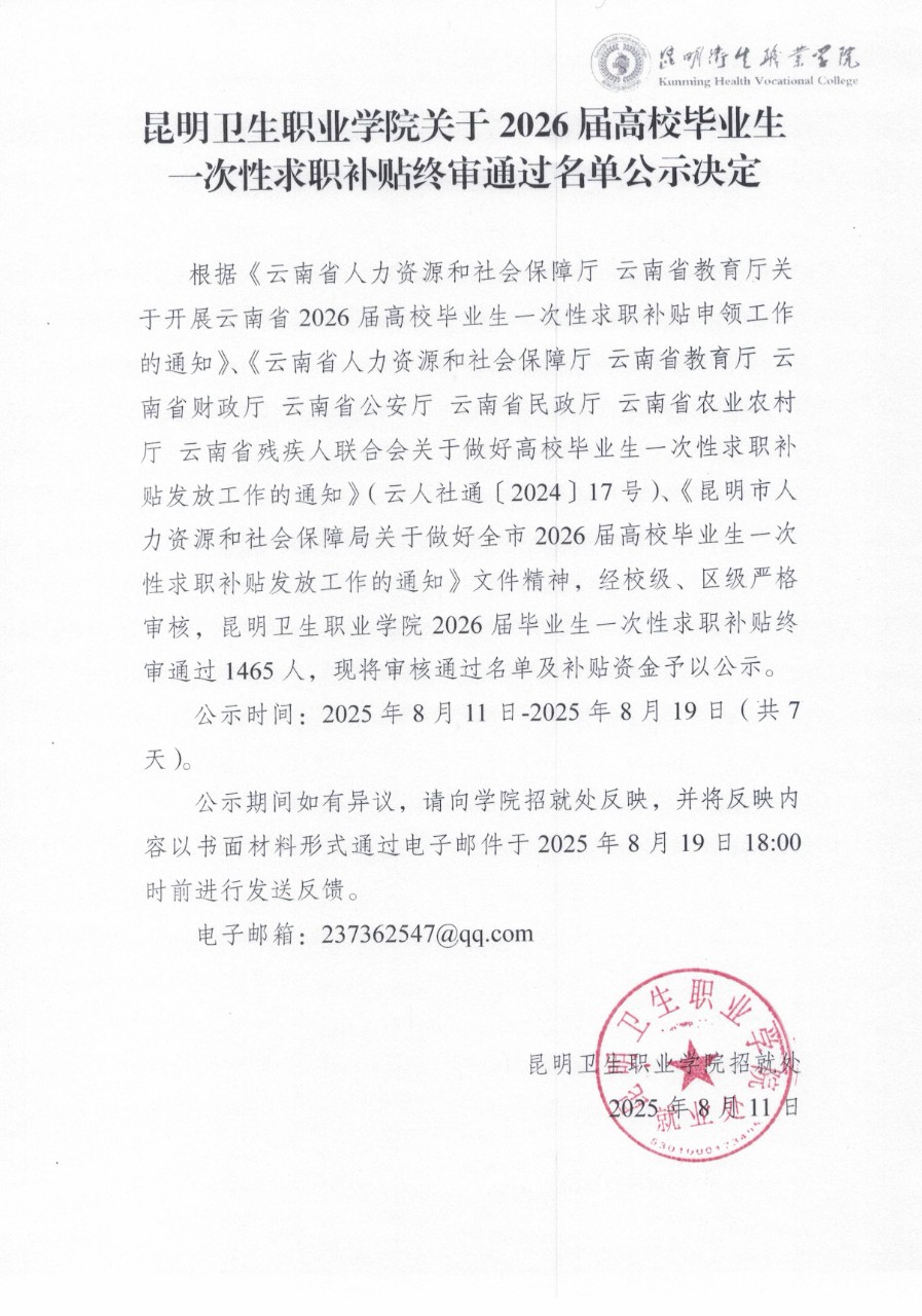 KY开元集团官网入口关于2026届高校毕业生一次性求职补贴终级审核通过名单公示决定