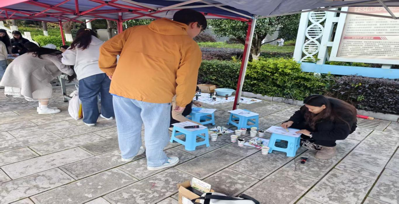 在心理吹画个人赛片区,同学们可以用嘴或吸管对着颜料吹,控制气流方向和力度,让颜料散开形成图案,随心所欲,吹出无限可能,借吹气形成显性线条释放内心焦虑,并通过自由创作满足心理表达欲,实现情绪宣泄与即时放松,让这个冬天增添了更多的欢乐。