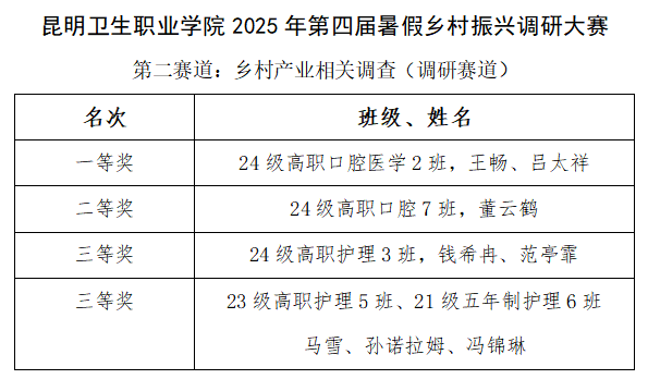 KY开元大学生工作部成功举办第四届假期乡村振兴调研大赛,本次大赛同期设立“家校心理联动”(实践赛道)和“乡村产业相关调查”(调研赛道)双赛道,共收到来自护理、中医、口腔、临床等多个专业的优秀调研报告,近日获奖名单正式公布。大赛以“家校同心·健康同行”为主题,各组同学利用暑期深入云南省宣威、会泽、晋宁、宜良、元阳等地的农村、医院、产业园区,通过问卷、访谈、实地观察等方式,认真调查,展现了医学生扎根基层、服务社会的专业担当。