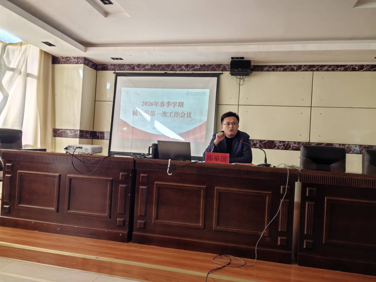 随后,学校副校长陈举国作工作部署讲话,围绕新学期学生工作核心任务,从辅导员队伍建设、学生思想工作、行为习惯培养、安全工作、纪律工作、劳动教育、学生活动组织、学生社区工作、招生工作参与、就业工作推进十个方面,进行全面、细致的安排部署。讲话中,陈副校长明确了各板块工作的具体要求、实施路径和考核标准,强调要把政治建设摆在队伍建设首位,将思政教育融入学生日常,严守安全底线、狠抓学风纪律,彰显职教特色开展劳动教育,同时推动辅导员主动参与招生、全程抓实就业,以全维度、精细化的管理,护航学生全面发展。