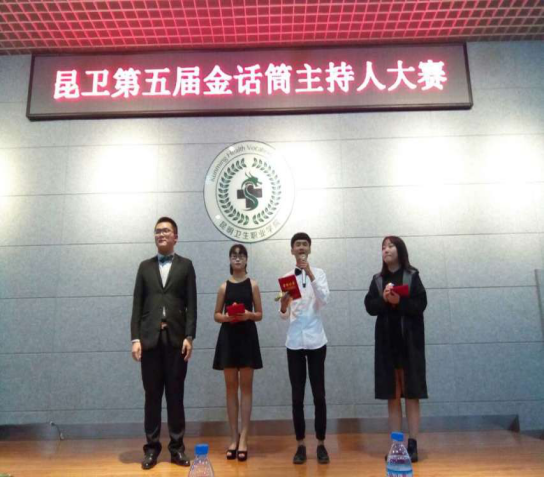 11月7日晚,由团委主办校园之声广播站承办“第五届金话筒主持人大赛”决赛在学术报告厅隆重举行。团委艾长辉老师,五年制大专部副主任易斯坐老师,团委老师高梦婷老师、董敏老师,办公室主任杜艳芬,社联主席孙朝芳,社联副主席尹可庆出席本次活动并担任宾。此次比赛分为小咖秀和妙语连珠两个环节。评委根据参赛选手的综合表现进行打分。