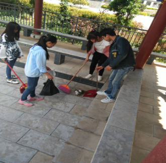 (图一:打扫小广场走廊)