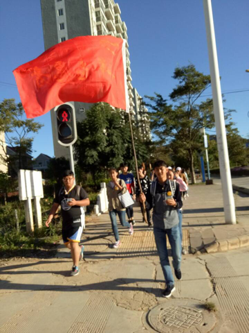 看完校园的环保小卫士,让我们一起来看看,校外的志愿者们在干些什么?由青志联副主席段伟带队的环保徒步行小分队出发啦!