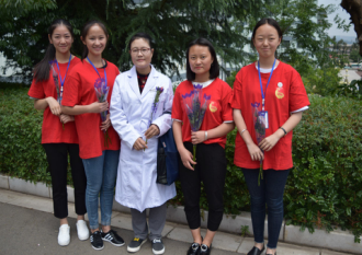2017512日学院校团委礼仪队订了200余朵玫瑰花举办了“第三届母亲节感恩送花活动”。 中午11:40放学,志愿者们就在图书馆前广场准备就绪,给学院当了妈妈的女老师,或者是年轻的女老师,送上一朵玫瑰花,并送上祝福语。