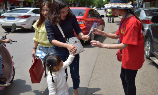 下午13:30,志愿者又出校门到昆阳大街进行针对带着孩子的母亲送上一朵玫瑰花,并送上祝福语;还可以针对男女青少年,让她们在便利贴上写上对妈妈的祝福语贴在展板上,或者当场亲情连接打个电话给妈妈,对妈妈说祝福语,表达对妈妈的爱,完成任务送上一朵玫瑰花。 吃过早饭后,大家带上美丽的鲜花,伴着欢声笑语到达咱们的活动地点——郑和故乡昆阳大街,看到那些带着孩子的妈妈,都不禁想起小时候母亲呵护我们的样子,在远方上学的同学,大概也和我们一样,充满了对母亲的思念。