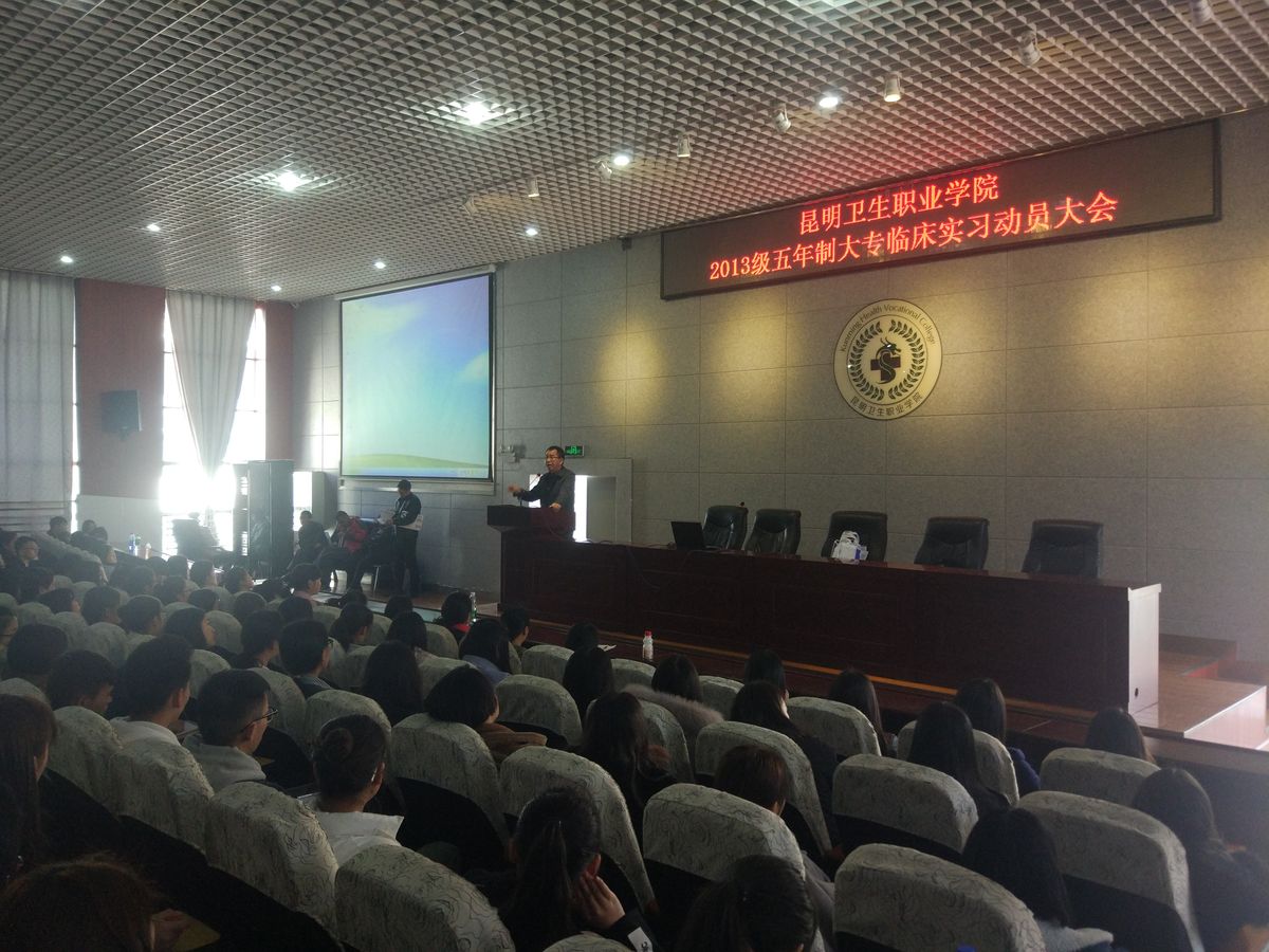2月28日,KY开元在学生实习前召开了“2013级五年制大专临床实习动员大会”。实习就业部张尤松部长,重点强调了医疗、交通、人身、治安、用电等方面的安全问题。要求学生在实习期间熟练掌握基本操作技能,提升沟通技能,培养临床思维。会后,组织各实习医院组长进行培训,畅通实习期间学校与实习生的沟通渠道,加强实习生管理。
