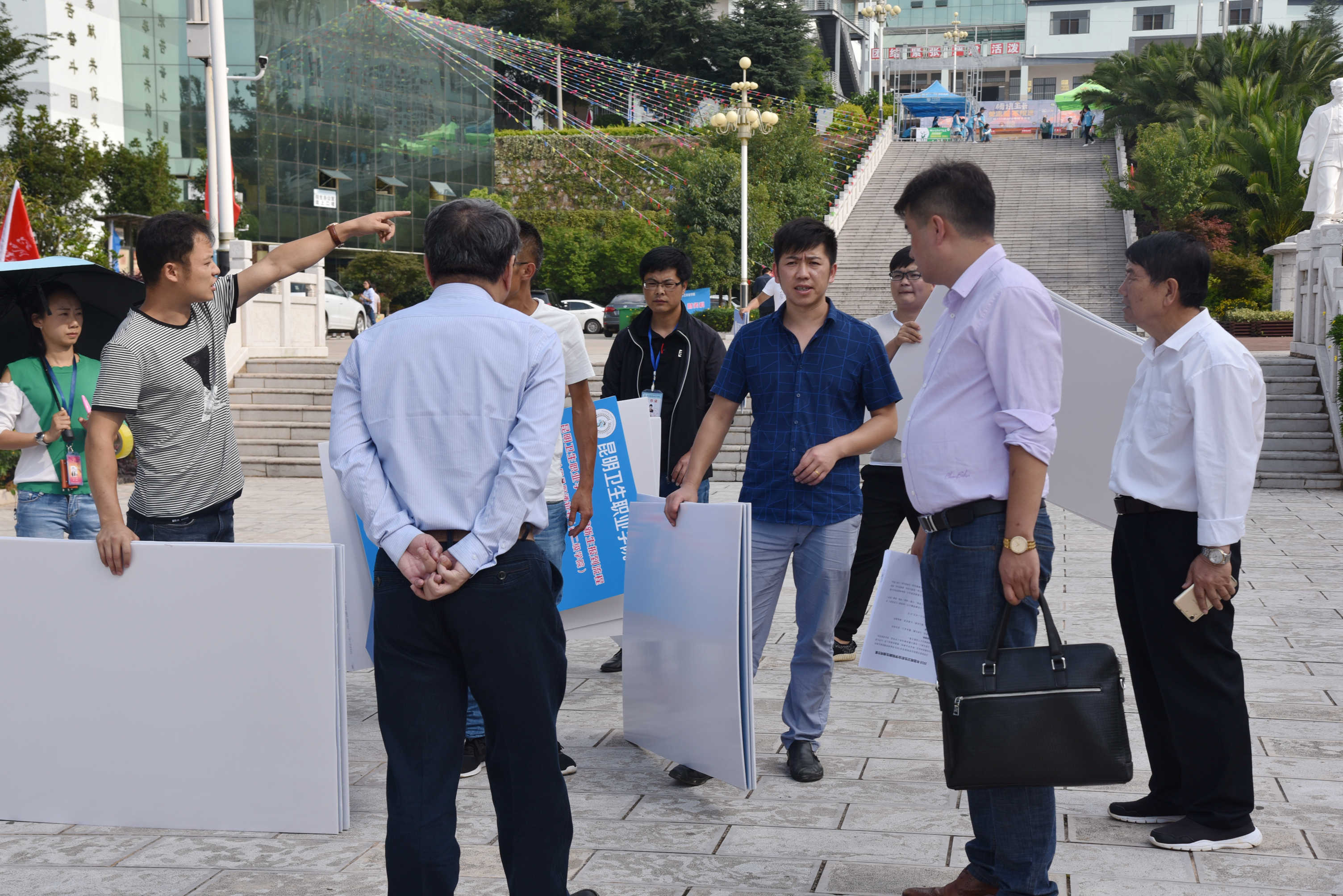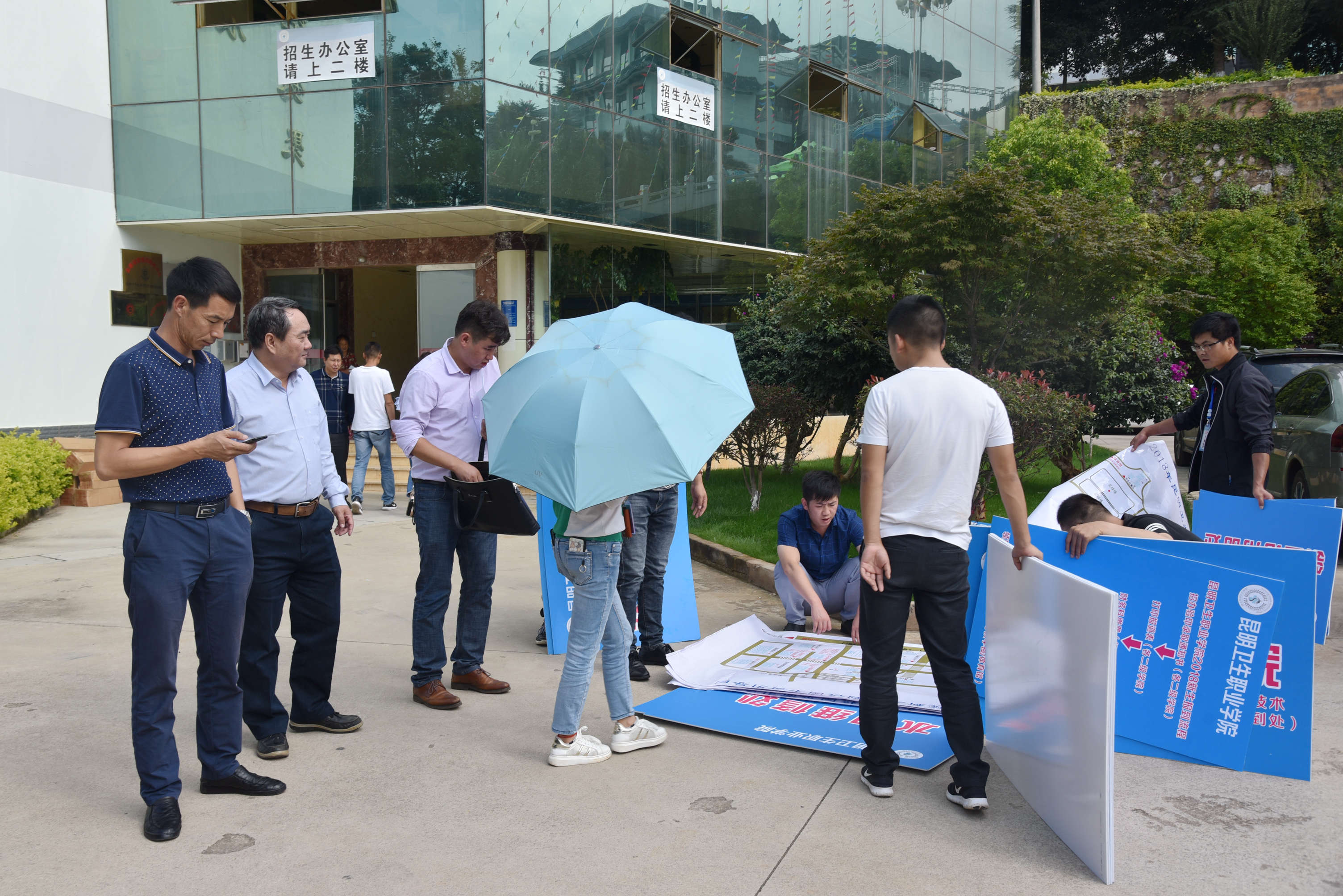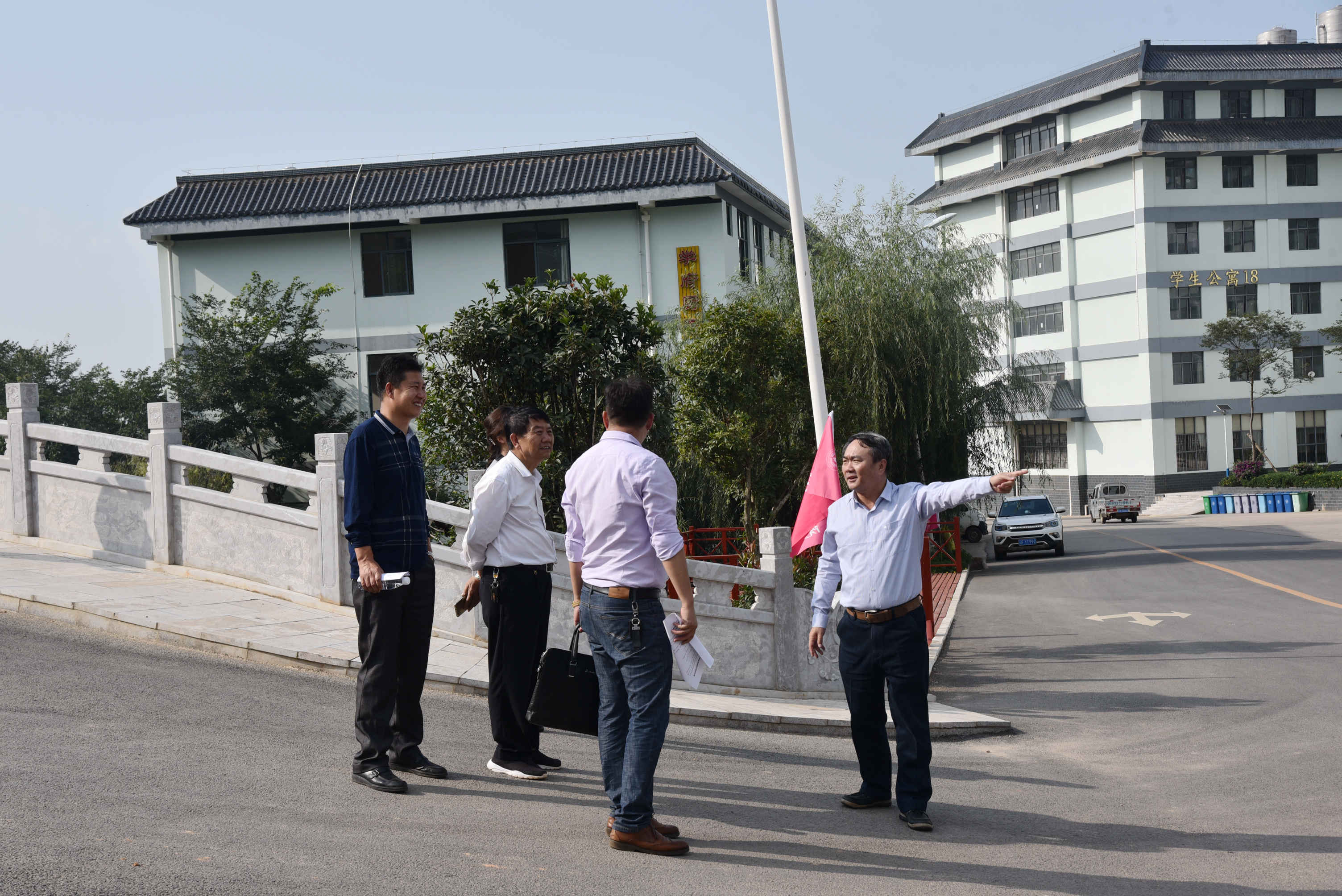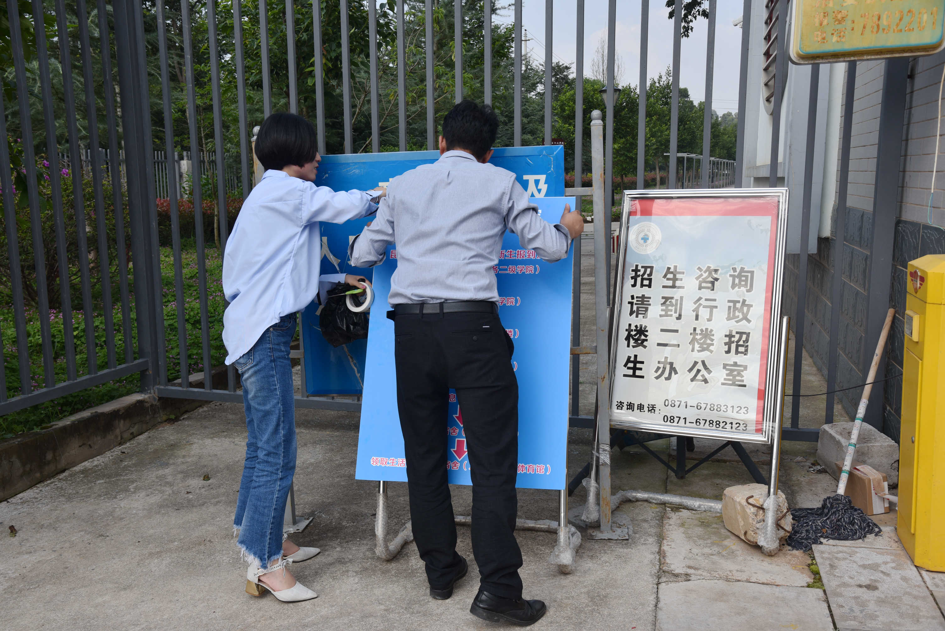 002 学院领导检查校园指示牌物资到位情况