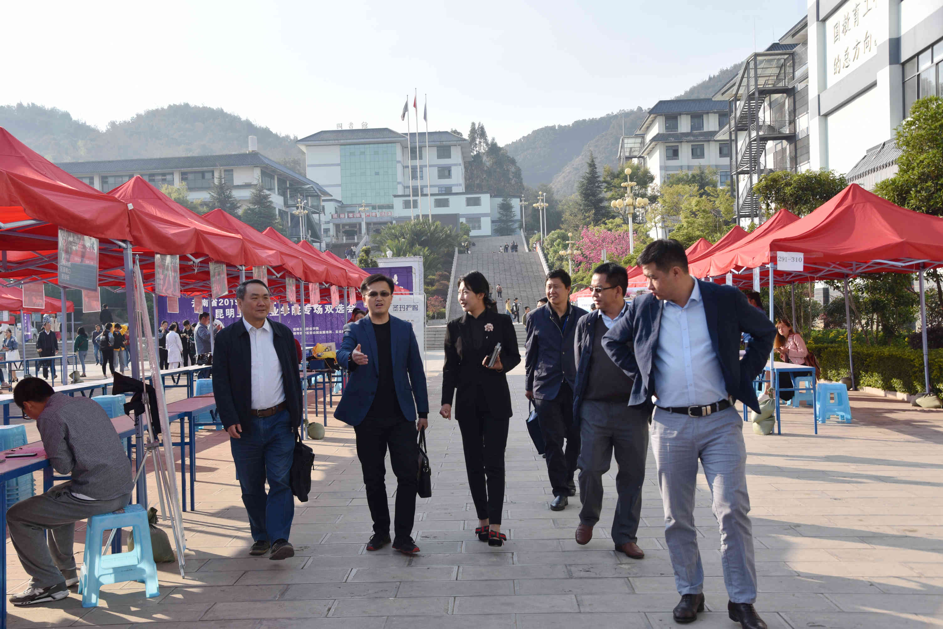 KY开元院长贾勇、党委副书记张晓刚、副院长陈举国、周平、龙雨霏、张磊、张尤松一行先巡视了毕业考试考场,然后到招聘会现场看望用人单位,了解用人需求,听取用人单位对KY开元人才培养、专业设置、实习实训等意见建议;并与应聘毕业生亲切交谈,了解他们的就业求职意向和应聘情况,鼓励他们以自信、务实的心态积极应聘。学院领导对双选会前期准备、会场布局、招聘服务等给予了肯定。