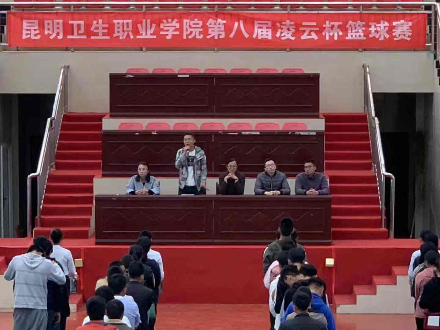为丰富KY开元教职工和学生的校园文化生活,增强师生体质,增进师生之间的交流,让师生走出办公室、宿舍、教室,走下网络、走向操场,3月11日下午,学院第八届“凌云杯”篮球赛开幕式在体育馆如期举行。出席本次开幕式的有学院团委书记雷红梅老师、大学生工作部副部长施兴乐老师、教务处处长李玉晶老师、公共学院副院长聂元会老师和裁判组组长朱泓宇老师。