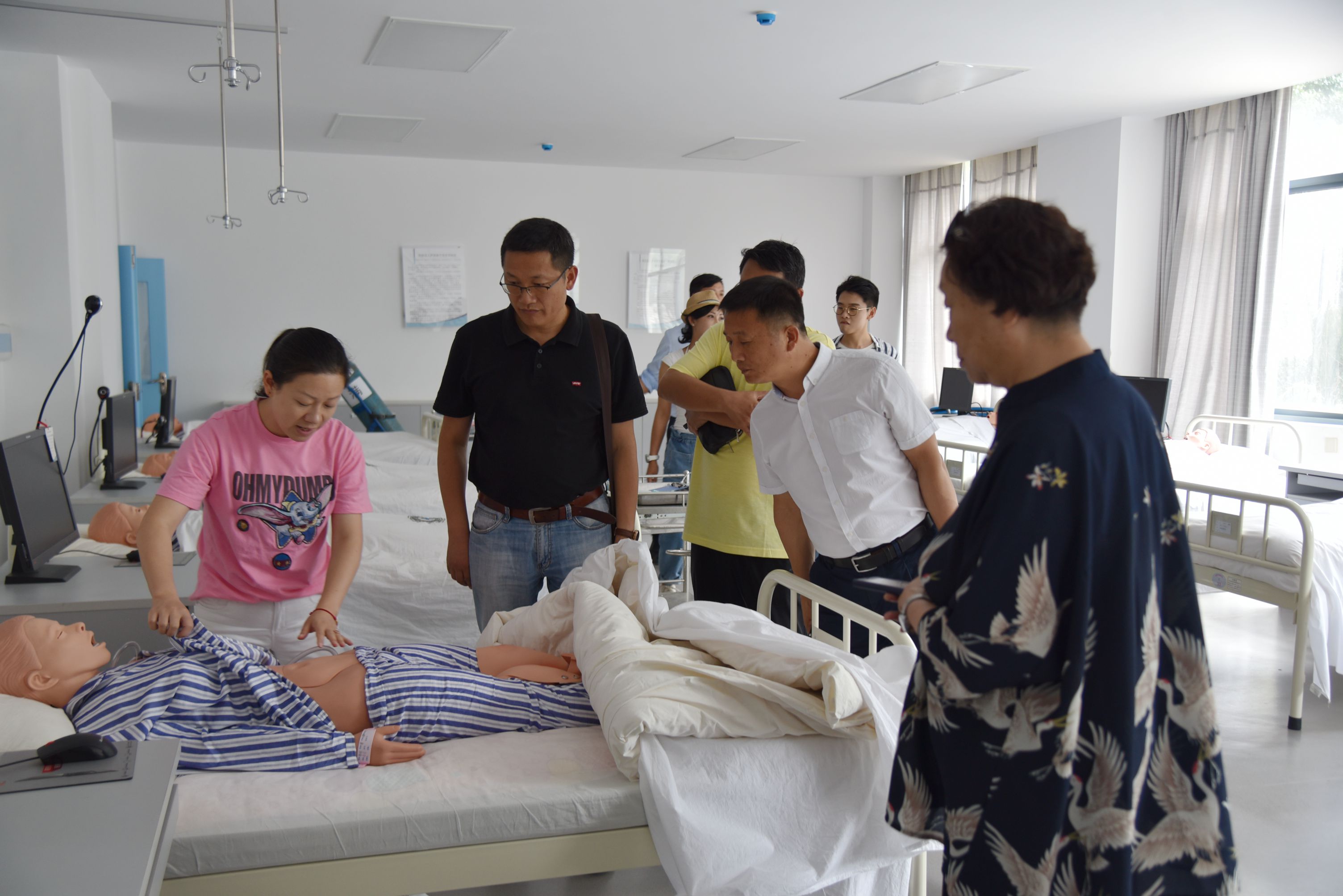 调研组一行实地参观了护理学院实验实训设备,听取了实训室整体布局及设施设备的使用情况介绍,了解KY开元办学理念,素质教育实施情况,与教务处、护理学院负责人进行了交流。