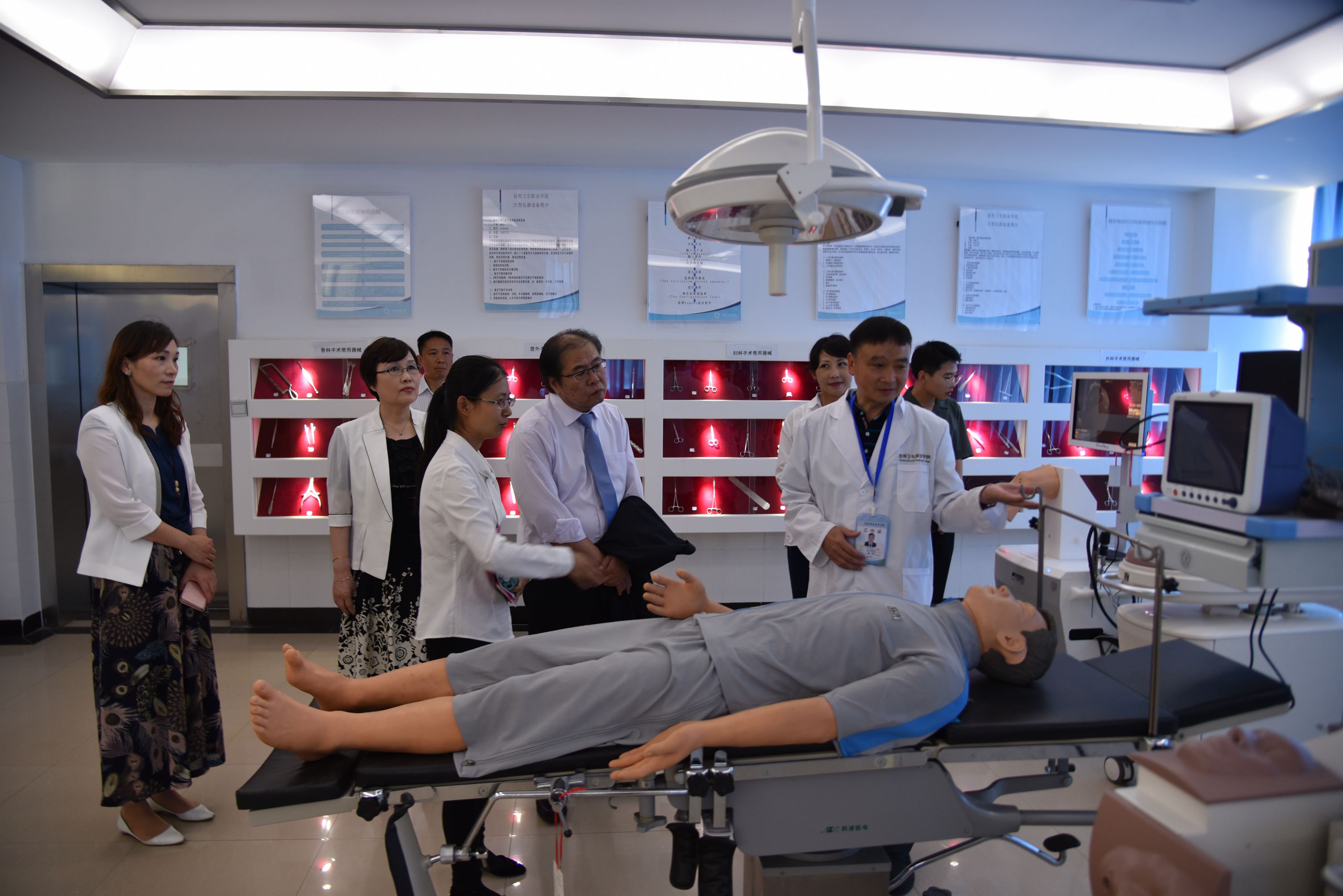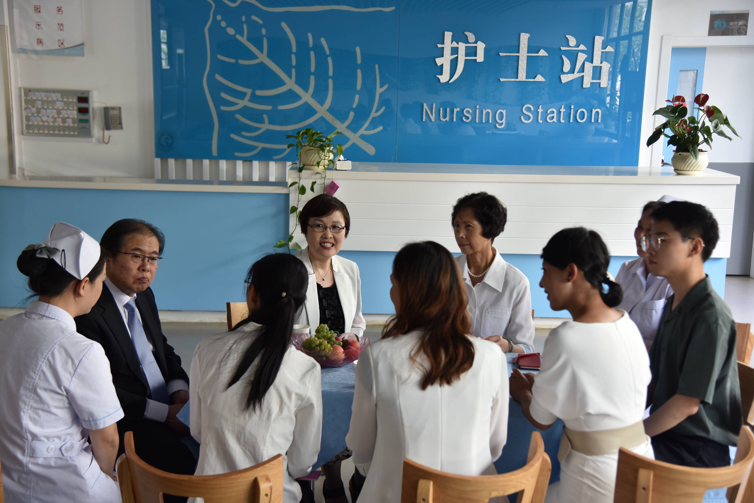 集团副理事长朱秀珍、学院副院长龙雨霏陪同野左近院长一行参观了校园,重点了解了护理学院教学情况,试验实训设备配置情况,观看了野外救护、育婴、ICU护理抢救等实操演练,并对基础医学院、临床学院、口腔学院实验实训室建设情况进行了参观考察。实地参观结束后,野左近院长一行与KY开元学生进行了交流