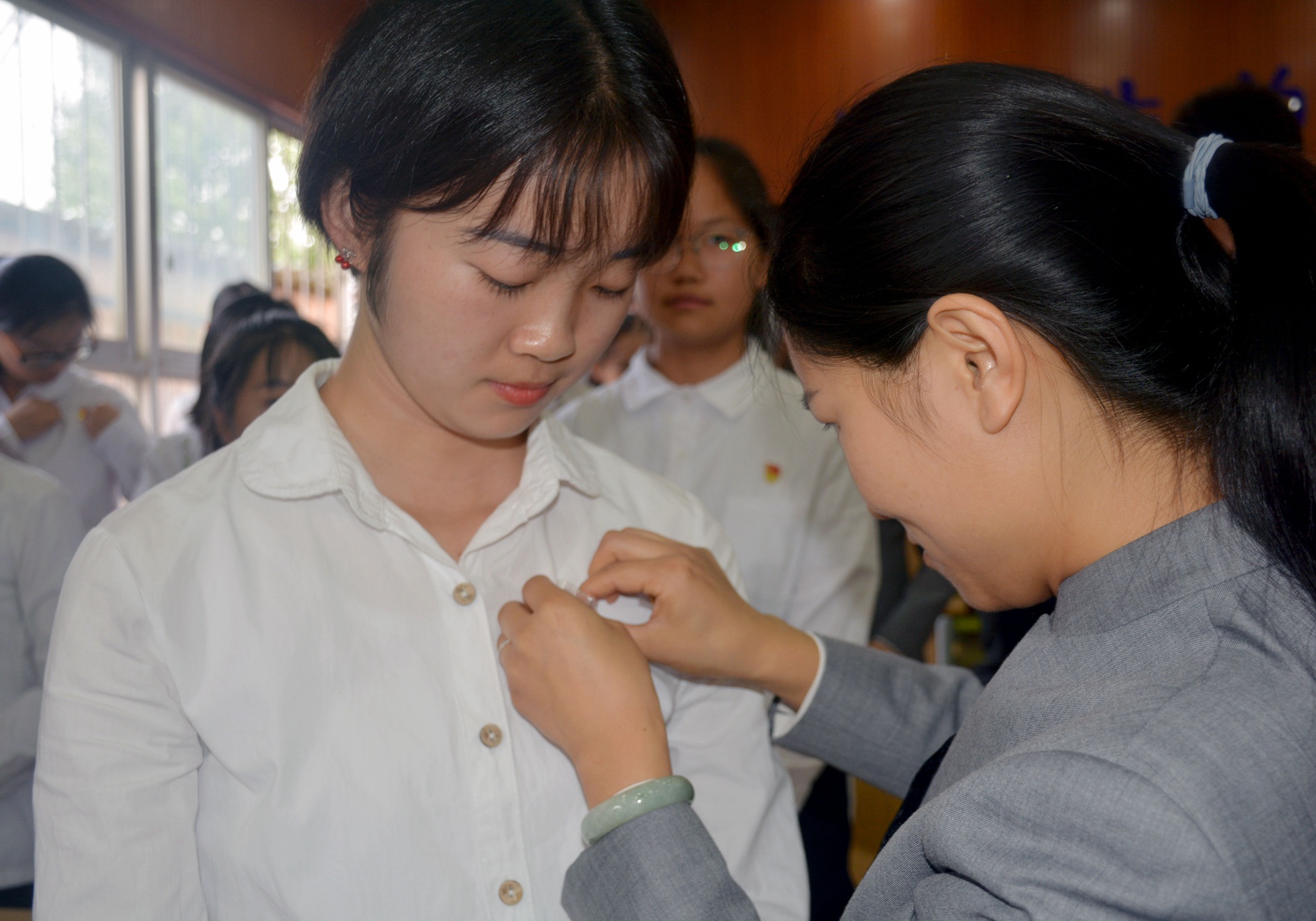 党委副书记、组织部部长张晓刚宣读了党委关于接收钱学锦、蒋新艾等60位同志为中共预备党员的审批意见。各党支部负责人为预备党员佩戴党徽,与会预备党员在党委委员、宣传统战部部长王斌同志带领下进行入党宣誓,其他与会党员重温入党誓词。