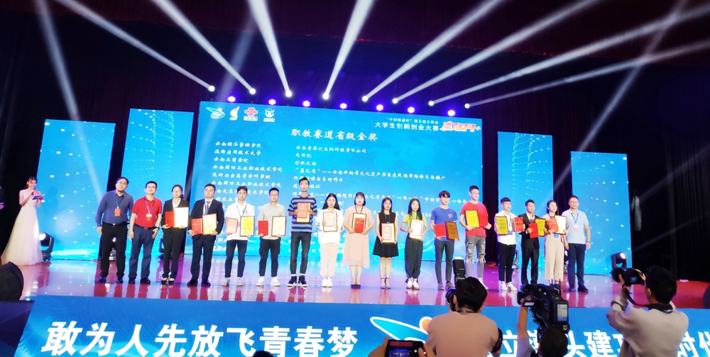 经过统计KY开元在本届大赛中获得省级金奖2项,省级银奖2项,省级铜奖13项,共计获奖17项。获奖总数为全省高职高专院校第二、民办高职高专院校第一。其中“麻斋”小草坝天麻加工销售平台项目是主赛道金奖中唯一一个高职高专院校的项目。