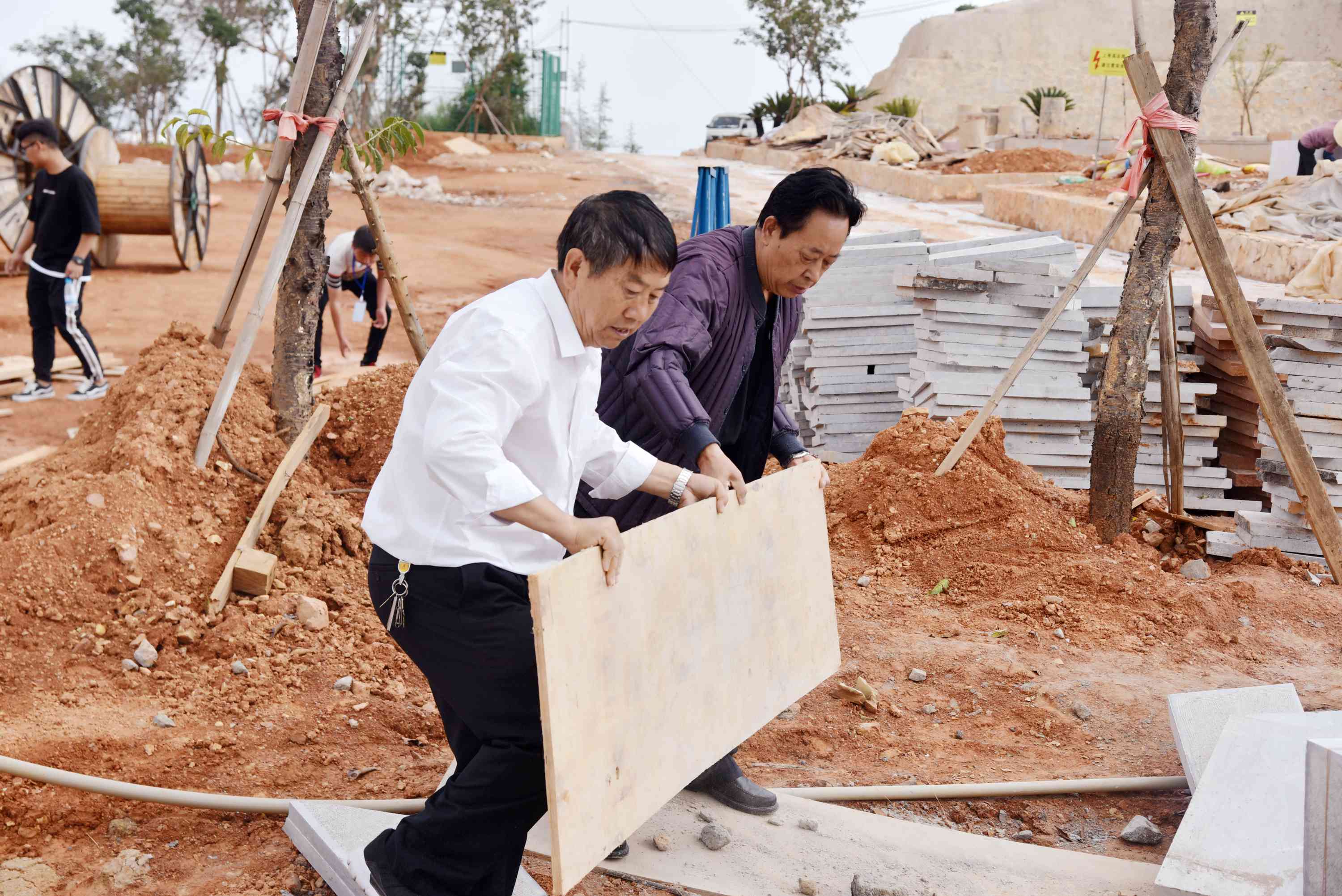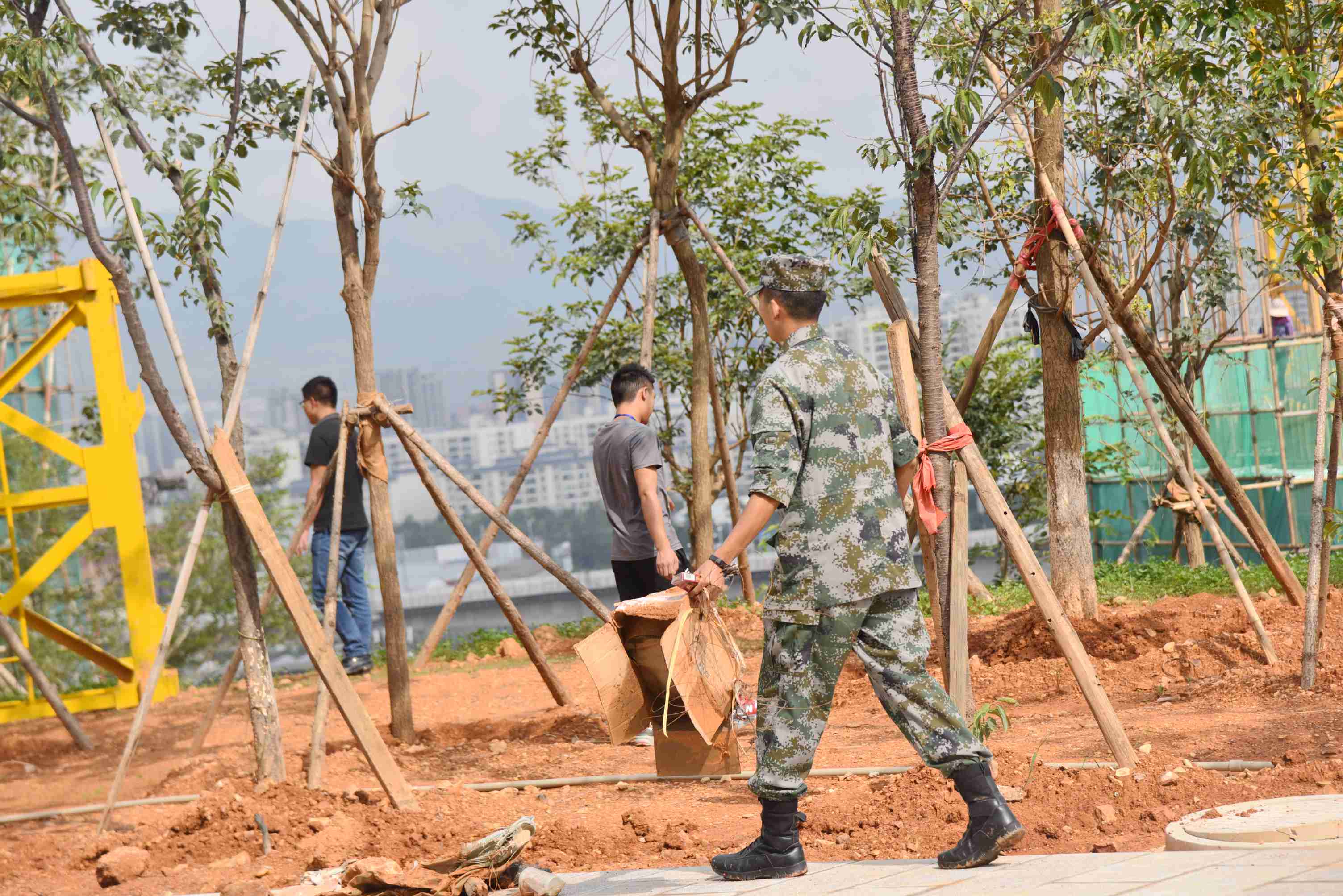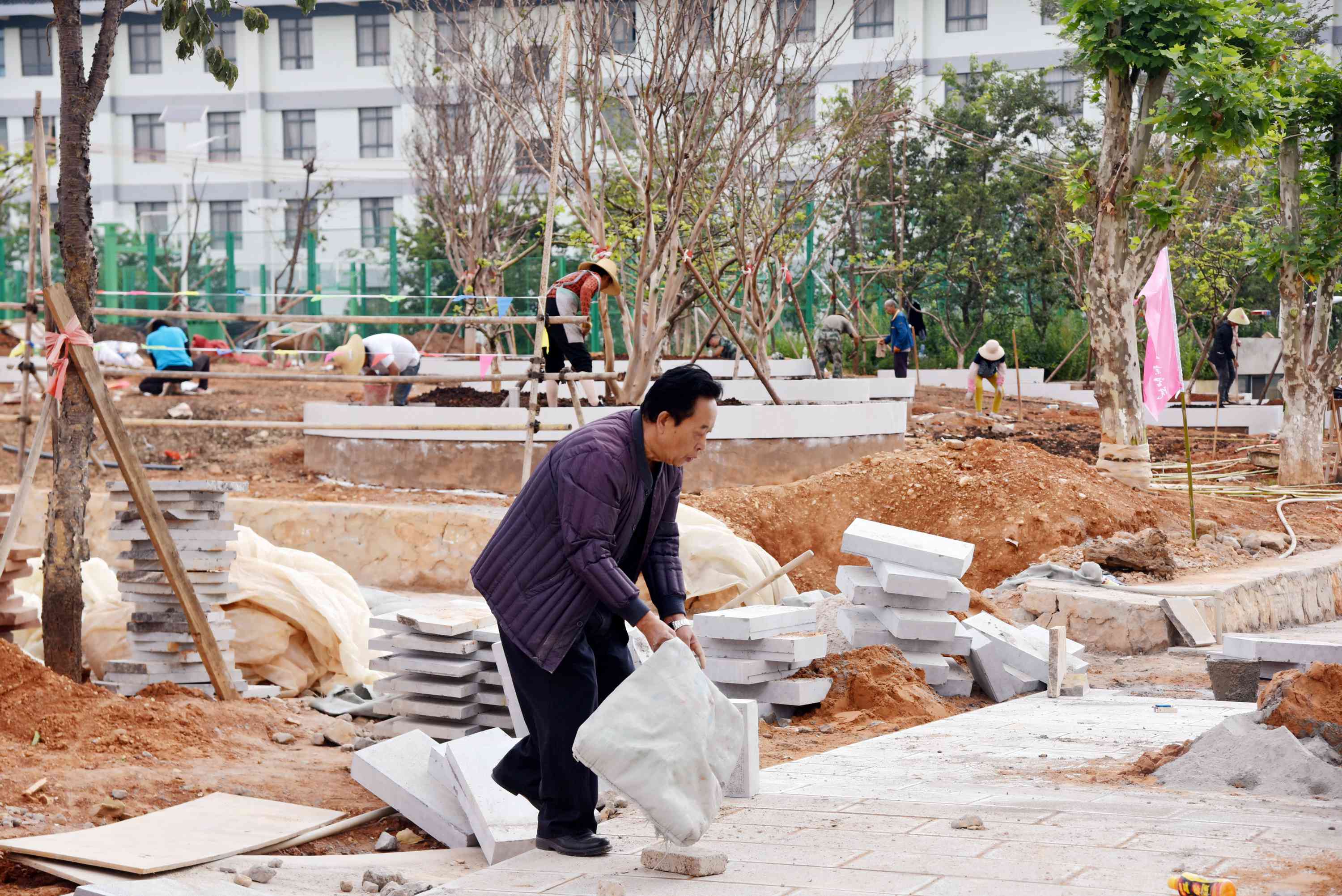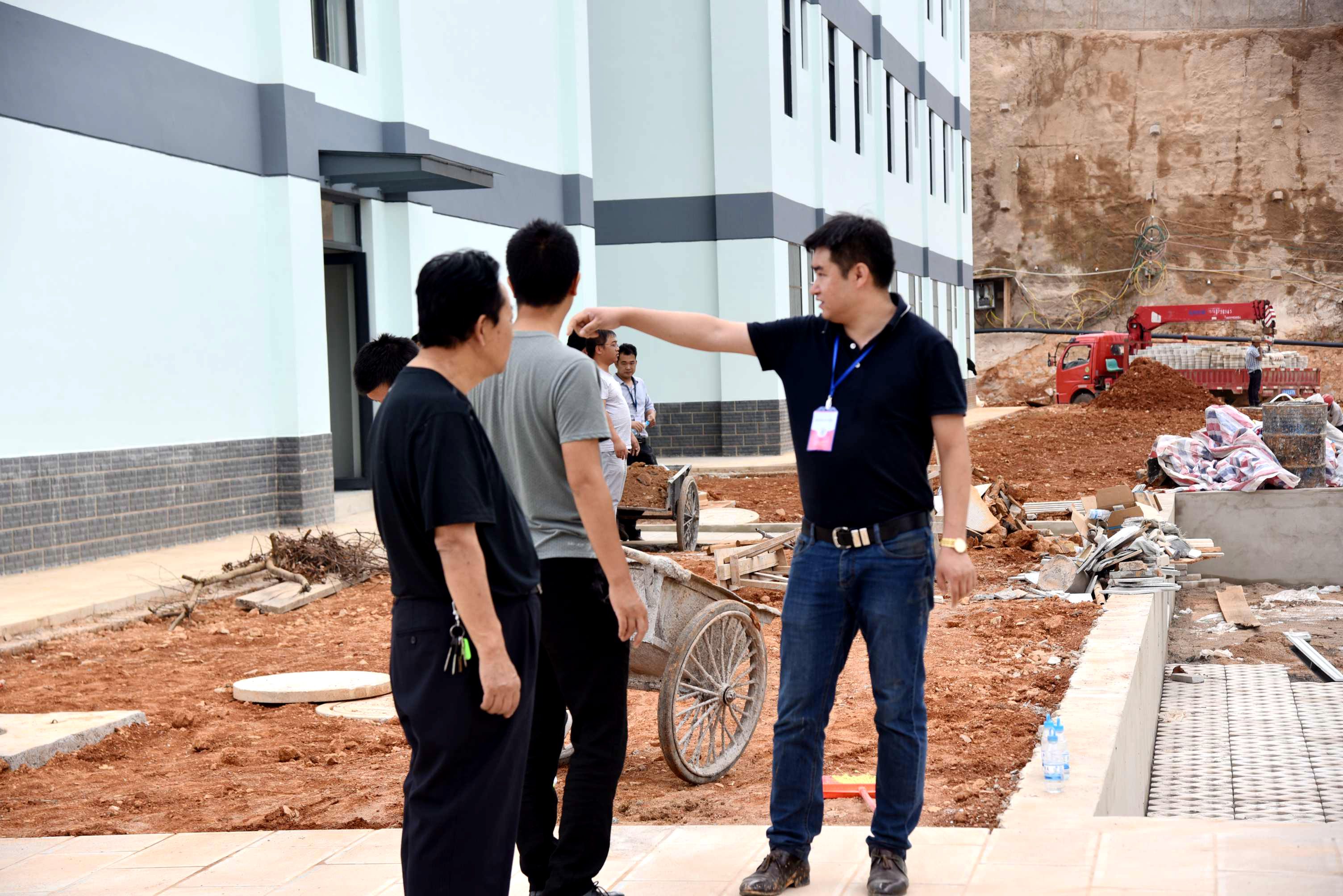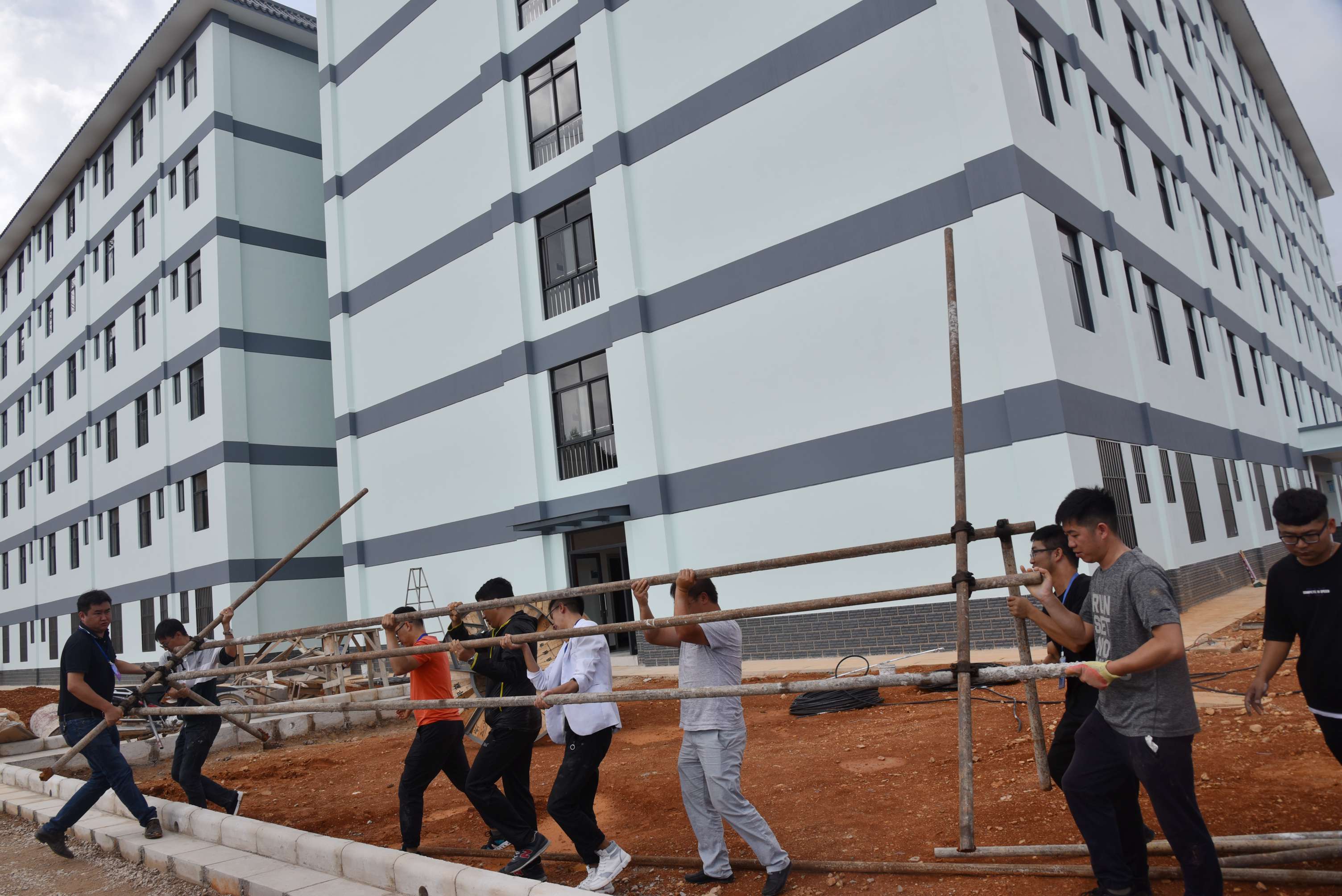 党委委员、副院长周平带领男老师清理宿舍外围空地