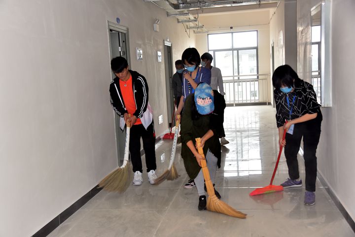 学院领导身先士卒,纷纷参与到大扫除活动中。师生们不怕脏不怕累,室内清扫的小组对各楼层宿舍、楼道等的地面做了认真清理,并安放好蚊帐架,将宿舍内的置物柜摆放整齐。室外清理组则对宿舍楼周边地面上的碎石砖头、果皮纸屑、枯枝杂草、塑料垃圾等杂物进行全面清理。