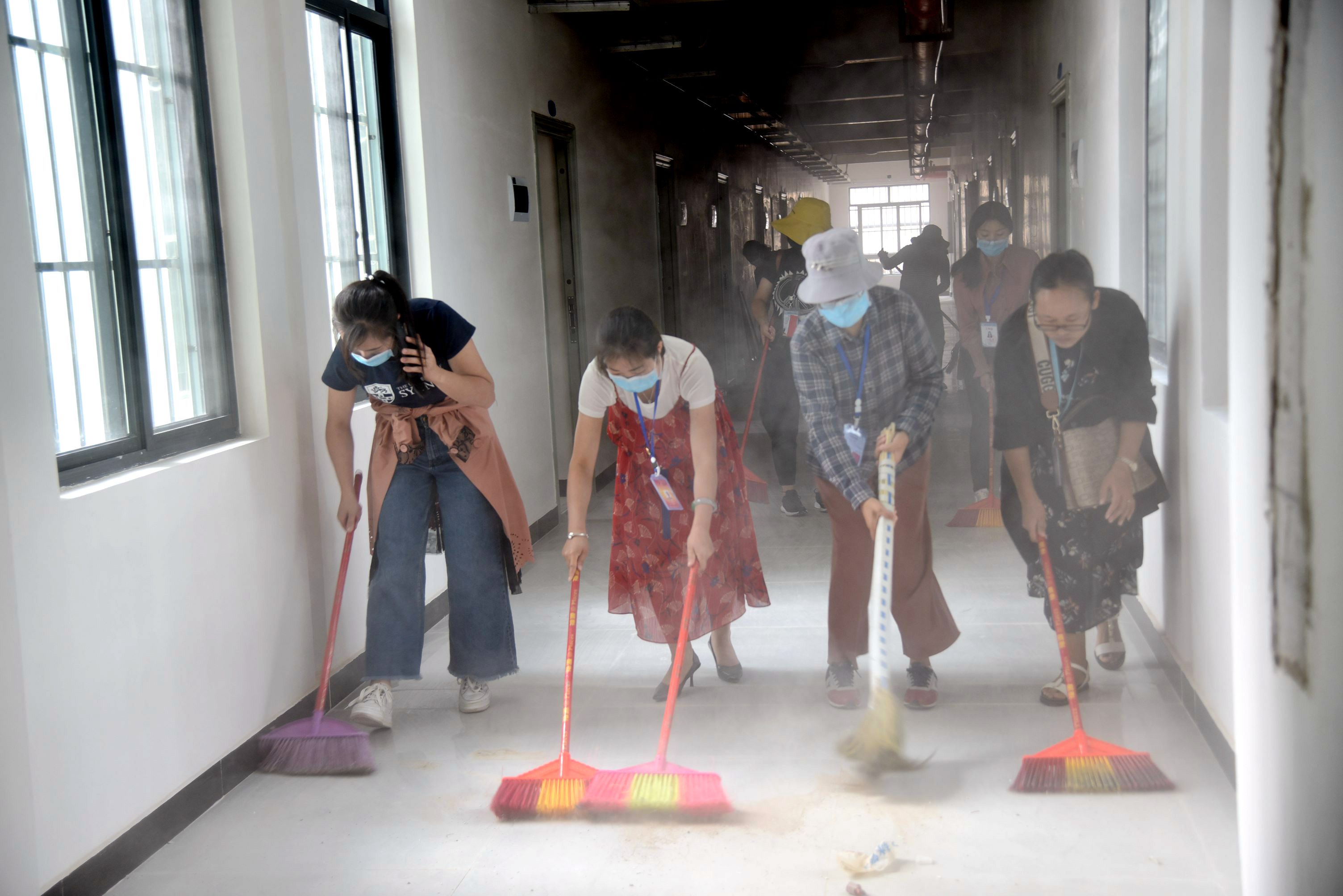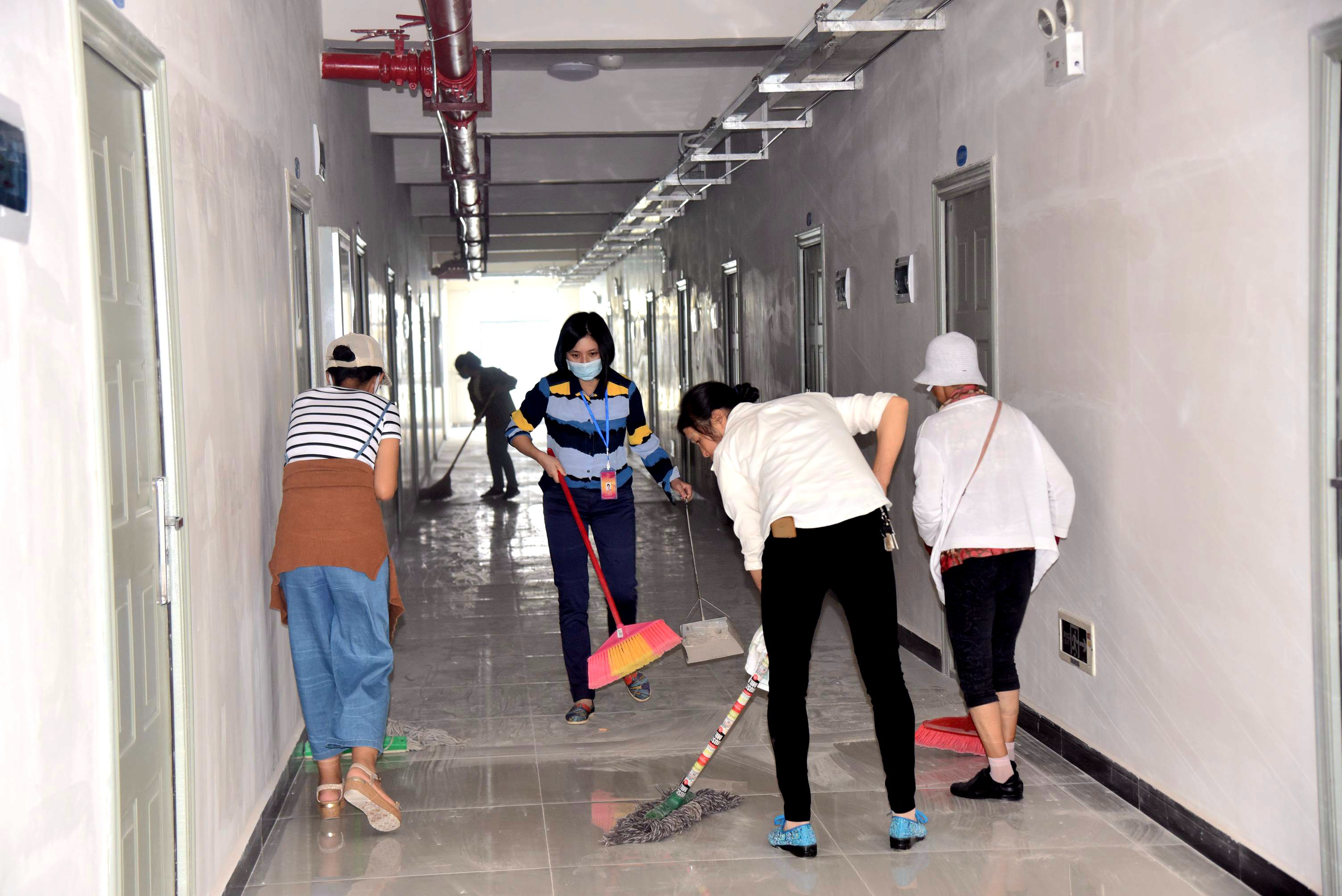 室内清扫组打扫楼道