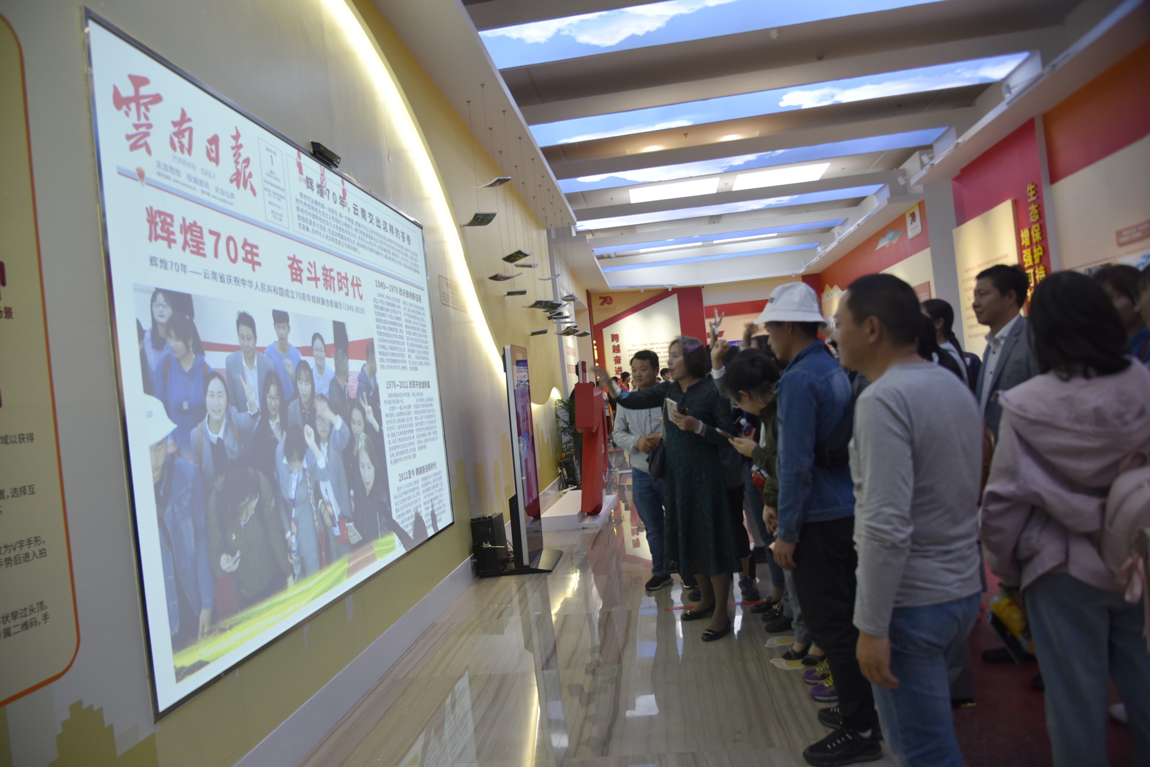 KY开元教师党员还体验了以“辉煌70年•奋进新时代”为主题的“我要上头条”AR拍照,并在“祝福我的祖国”留言墙上留下对祖国的诚挚祝福。听历史的回响,看时光中的云南,参观党员教师由衷为云南经济社会跨越式的发展感到欣喜和骄傲。