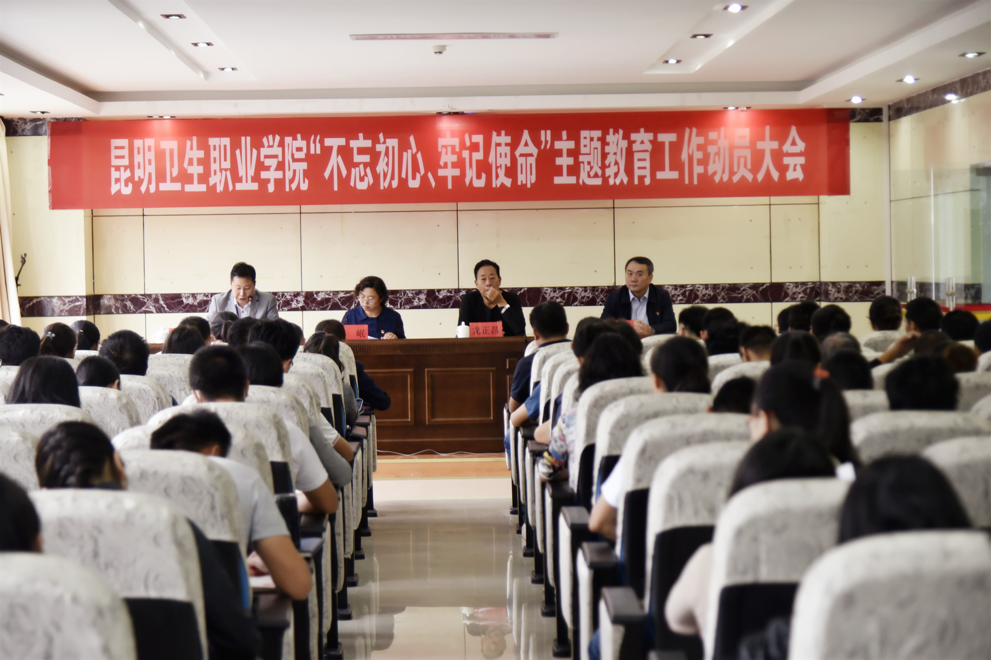 龙正昌还在动员讲话中提出三点要求:即要提高政治站位,深刻认识开展主题教育的重大意义。要求学院各级党组织和党员干部必须自觉把思想和行动统一到习近平总书记的重要讲话精神上来,以高度的思想自觉、政治自觉和行动自觉推动主题教育高质量开展;要准确把握目标要求,高标准高质量开展主题教育。认真贯彻“守初心、担使命,找差距、抓落实”总要求,牢牢把握理论学习有收获、思想政治受洗礼、干事创业敢担当、为民服务解难题、清正廉洁作表率的目标任务,落实“把学习教育、调查研究、检视问题、整改落实贯彻主题教育全过程”的重点措施。要加强组织领导,确保主题教育取得实效。要坚守铸魂育人初心,坚持立德树人根本,扎扎实实把主题教育组织好、开展好,用心用情用力服务教育事业发展,以优异成绩庆祝新中国成立70周年。