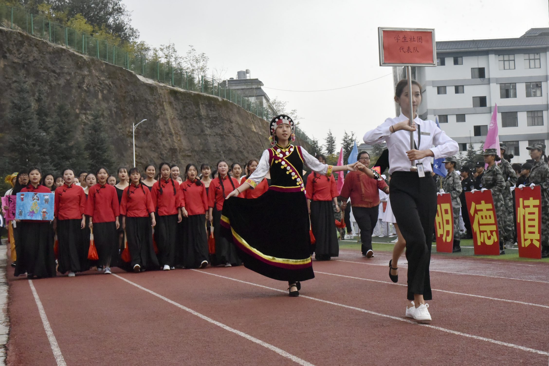 社团代表队和大学生艺术团表演方队是本次入场式的绝对主角。学生创意迭出,异彩纷呈,各具特色的服装道具彰显了朝气蓬勃、积极进取的精神风貌。在主席台前,他们进行了简短而极富创意的文艺表演,将对祖国的献礼、对学院的热爱和对运动的热情化成抖擞的精神,赢得主席台领导和全场师生的阵阵喝彩。