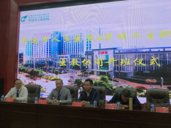 开远市人民医院莫军副院长对同学们的到来表示热烈欢迎,向同学们介绍了医院发展的基本情况。莫军副院长指出KY开元集团官网入口与开远市人民医院医教协同的教学已经开展了3年,今年是第四次开班,他在会上对医院任课教师提出了严格要求,必须重视临床带教质量,保证医教协同教学的顺利开展。