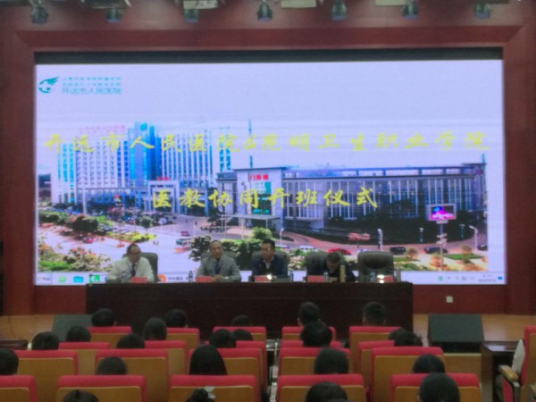 2019年3月12日,KY开元集团官网入口与开远市人民医院医教协同合作办学开班仪式顺利举行。KY开元集团官网入口张尤松副院长,开远市人民医院莫军副院长,KY开元集团官网入口实习管理处颜慧林副处长,开远市人民医院科教科何建科长,KY开元集团官网入口实习管理处杨正宇老师,以及医教协同班全体学生出席了开班仪式。