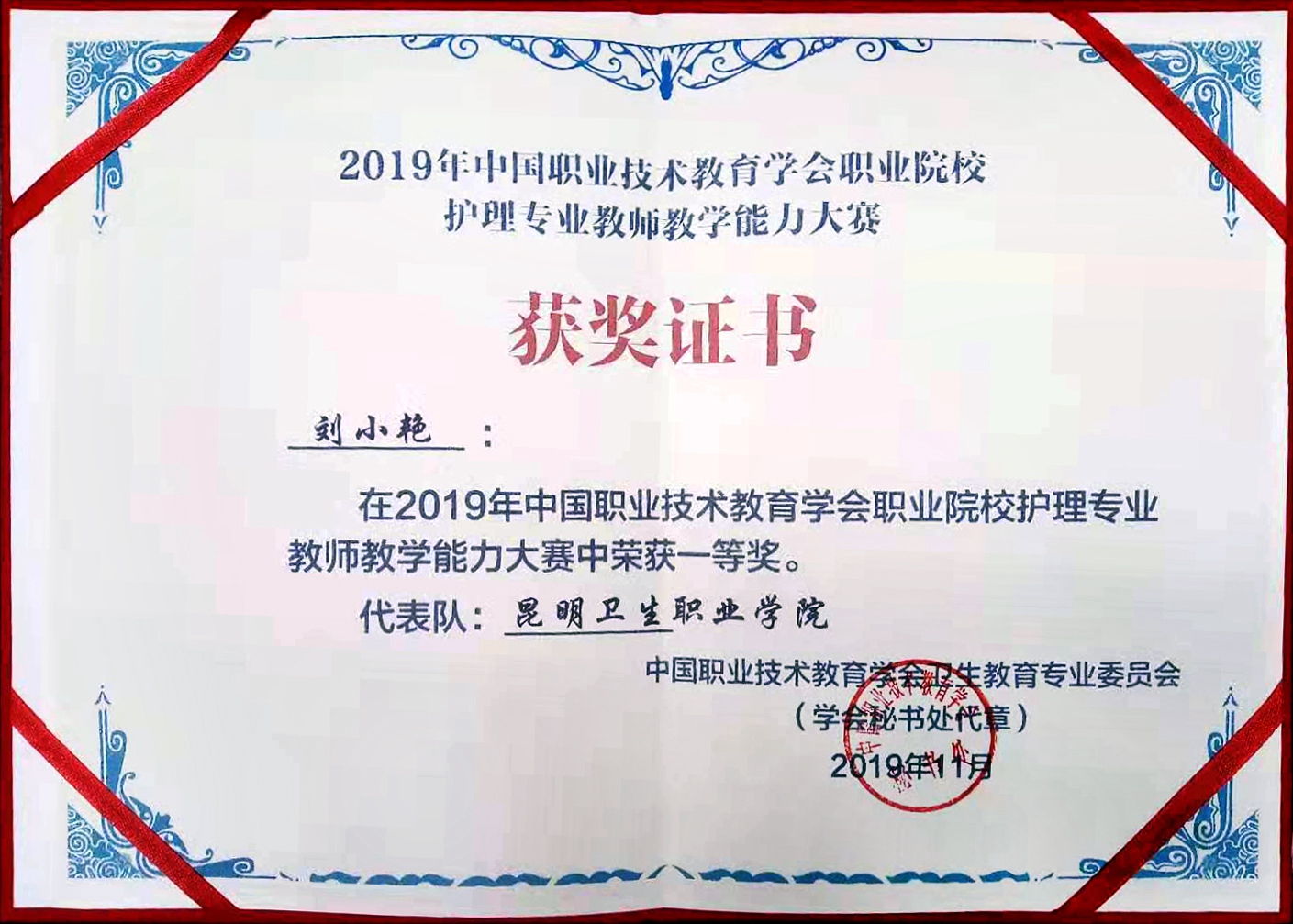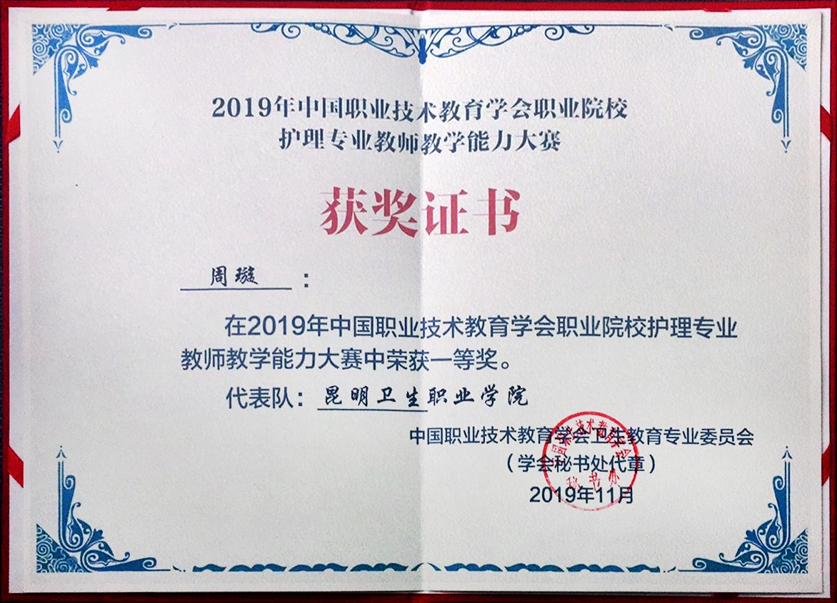 护理学院教师周璇、刘小艳代表KY开元集团官网入口参赛。参赛教师精心准备、沉着应战,经过为期3天的紧张比赛,斩获佳绩,获得团体一等奖,周璇老师、刘小艳老师均荣获了个人一等奖。其中周璇老师在说课程环节中以最高分97.33分打破了前两届说课程最好的成绩记录,以全国第一名的优异成绩得到专家评委的一致好评。
