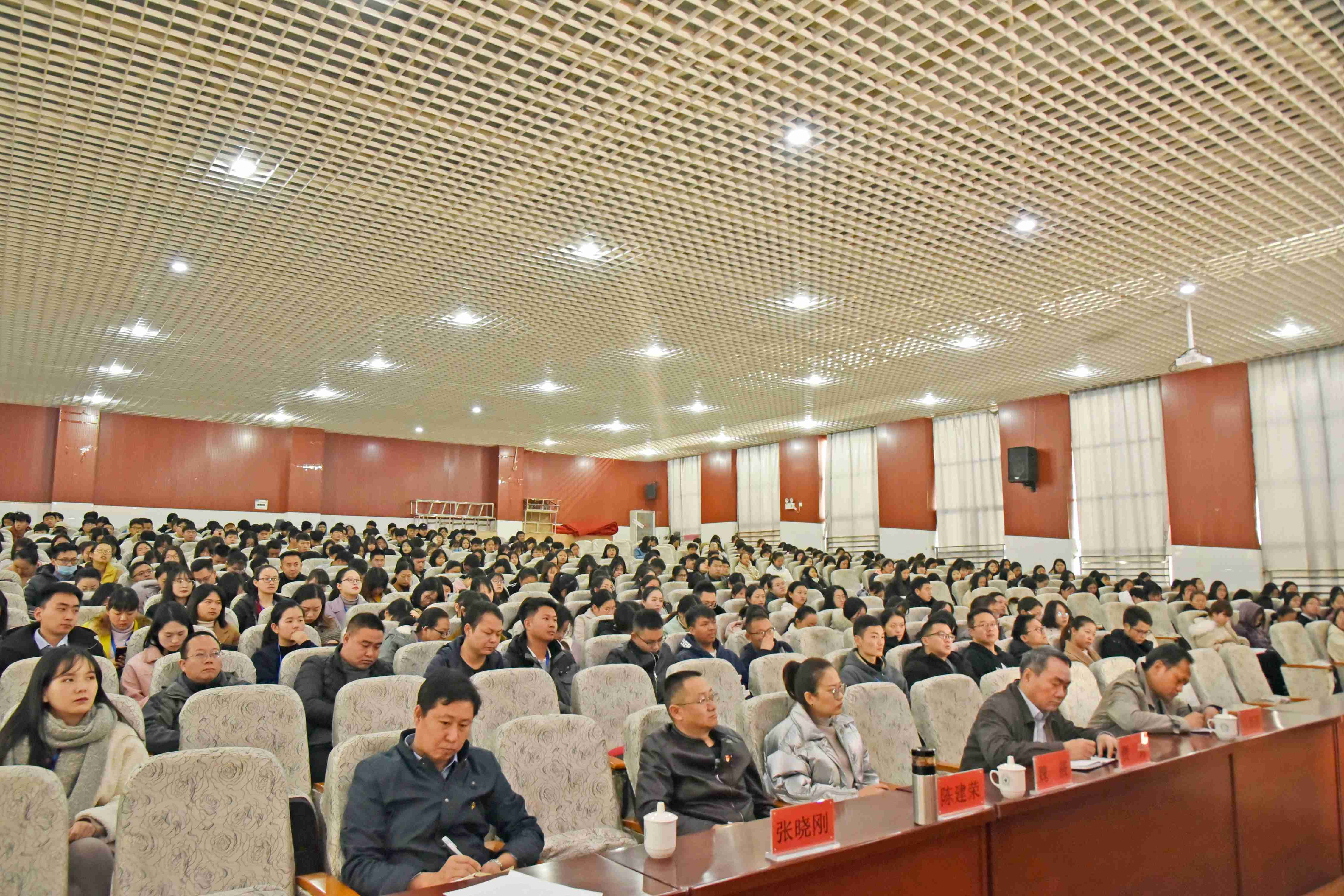 为深入学习贯彻习近平新时代中国特色社会主义思想和党的十九届四中全会精神,坚持以习近平新时代中国特色社会主义思想武装广大师生头脑,扎实推进“不忘初心、牢记使命”主题教育活动,全面提升高校治理体系和治理能力现代化水平。12月17日,KY开元集团官网入口学习贯彻党的十九届四中全会精神宣讲报告会在学院学术报告厅举行。邀请晋宁区人民政府副区长、区教育体育党工委书记、区卫生健康党工委书记李雁遐作宣讲报告。学院党委副书记张晓刚主持报告会。区政府办公室、区教育体育党工委、区卫生健康党工委领导,学院院长贾勇以及部分党政领导班子成员出席报告会。副处级以上干部、全体党员、骨干教师代表、团委学生干部、学生干部代表近600人现场聆听宣讲报告。