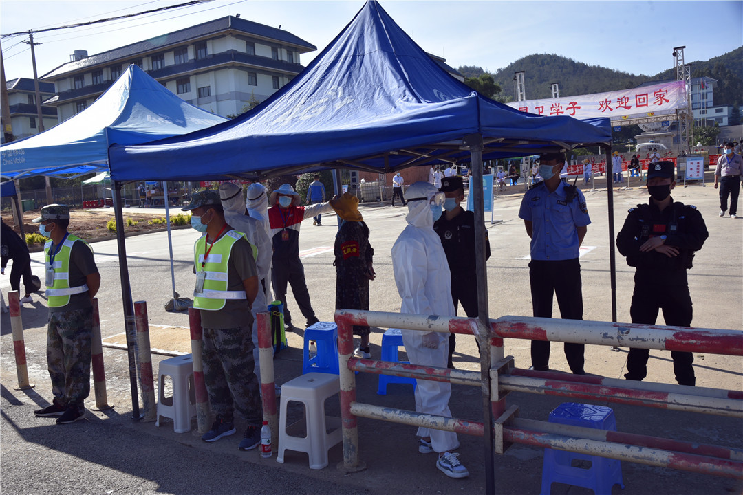 紧张有序的返校背后,离不开全院上下的努力付出和辛勤劳动,也离不开晋宁区委区政府的大力支持。区交通、公安、特警等多部门的工作人员与学院教职工共同执守,形成联防联控强大合力,确保了学生安全顺利返校。