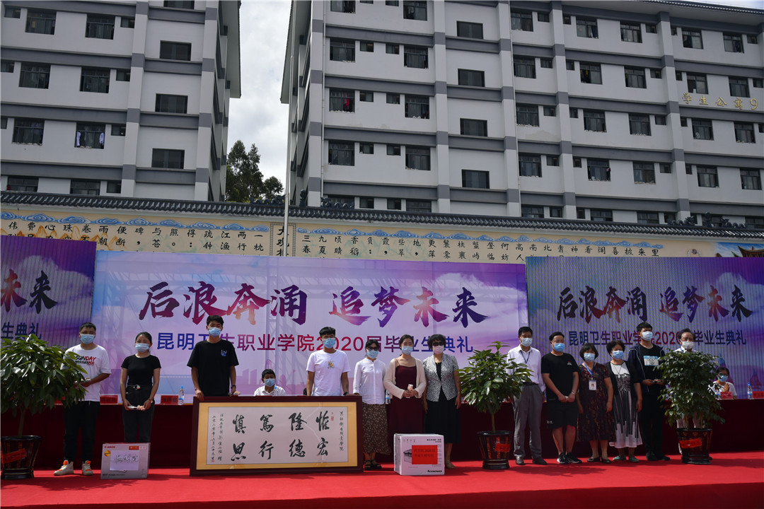 副院长龙雨霏宣读了2020届优秀毕业生、优秀实习生表彰名单。出席毕业典礼的领导为他们颁奖。