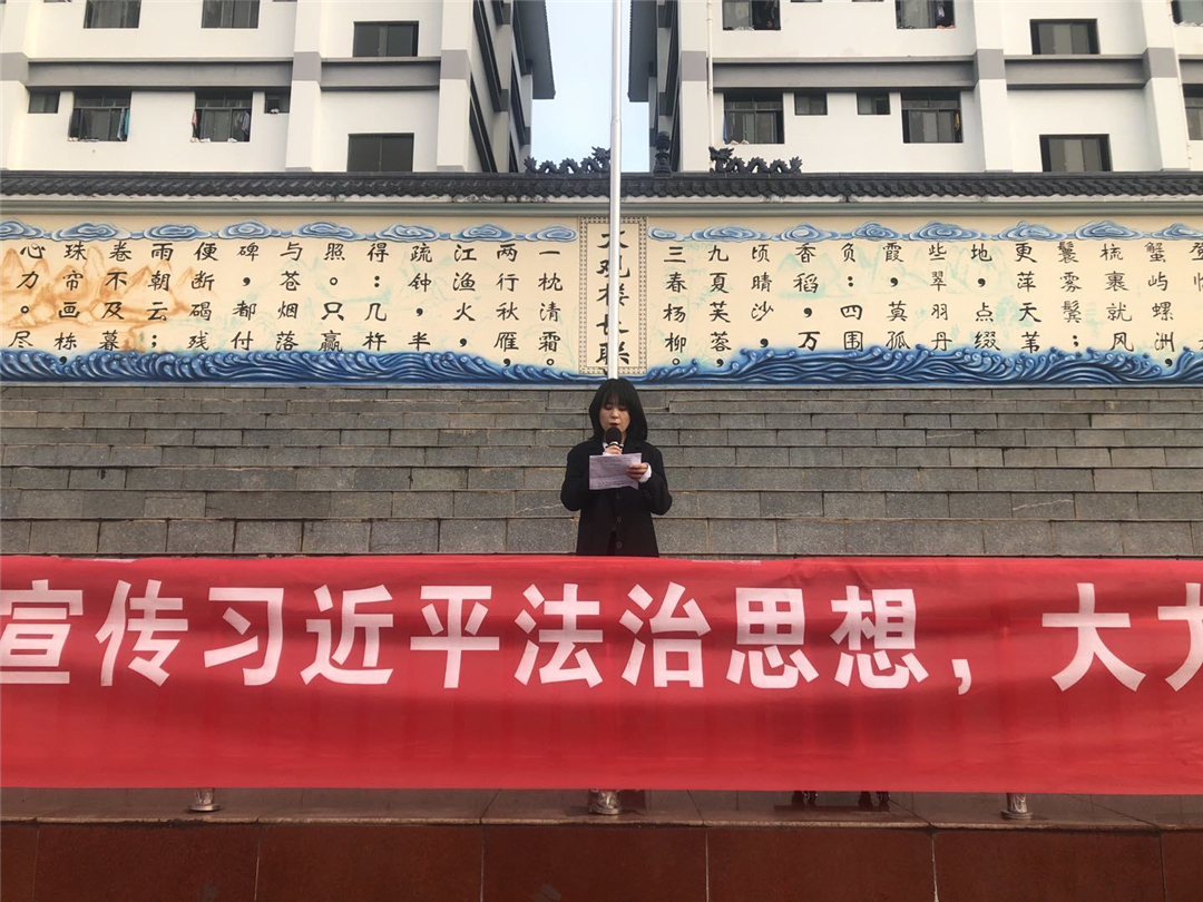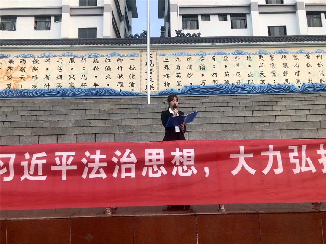 活动在庄严的国歌声中拉开序幕。学生代表李映源、赖奕含为全体同学做了主题演讲,她们用生动的案例告诉全体同学,《宪法》就在我们身边,我们每一个人都要遵循《宪法》和法律规定,用自己的实际行动捍卫《宪法》尊严,力促法治校园、和谐校园建设。