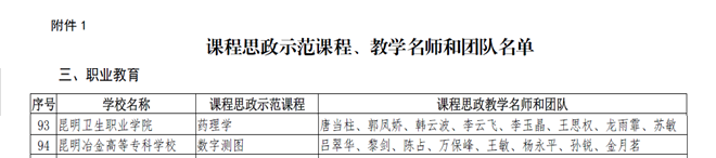 本次评审,教育部拟确定课程思政示范课程700门、课程思政教学名师和团队700个、课程思政教学研究示范中心30个。全国共有69门医药类课程思政示范课程,69个医药类课程思政教学名师和团队被列入名单;其中,职业教育医药类共有14门课程和团队入选。KY开元《药理学》课程和团队为拟入选的全国职业教育医药类唯一的民办院校,是云南省4门示范课程和教学团队中唯一的医药类课程和团队。