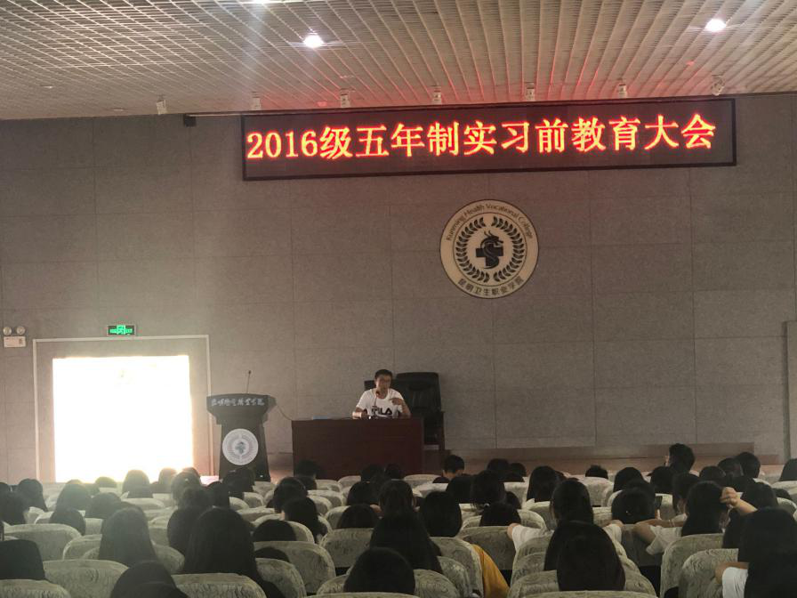 为了使实习学生尽快地进入实习角色,圆满完成实习期间教学任务和要求,加强学生管理,保障学生实习期间的安全,2020年6月13日,于晋宁校区学术报告厅召开了18级高职、16级五年制学生实习前教育大会。