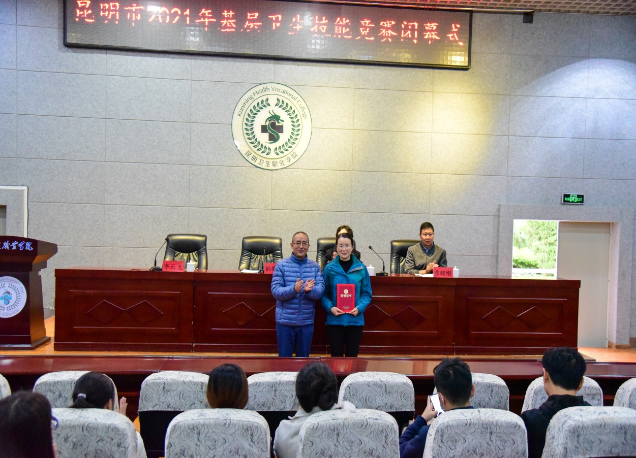经过激烈的角逐,最终,来自官渡区小板桥街道社区卫生服务中心的李芳文取得社区护理个人赛第一名;来自盘龙区金星社区卫生服务站的邱东华取得全科医疗个人赛第一名;晋宁区新街中心卫生院获得卫生服务团队赛第一名。2021年10月22日,大赛闭幕式在KY开元集团官网入口学术报告厅举行,昆明市卫生健康委基层卫生健康处处长韩曙磊,云南泓旻教育集团副董事长朱秀珍,KY开元集团官网入口党委副书记张晓刚出席了会议并为获奖选手和团队颁奖。
