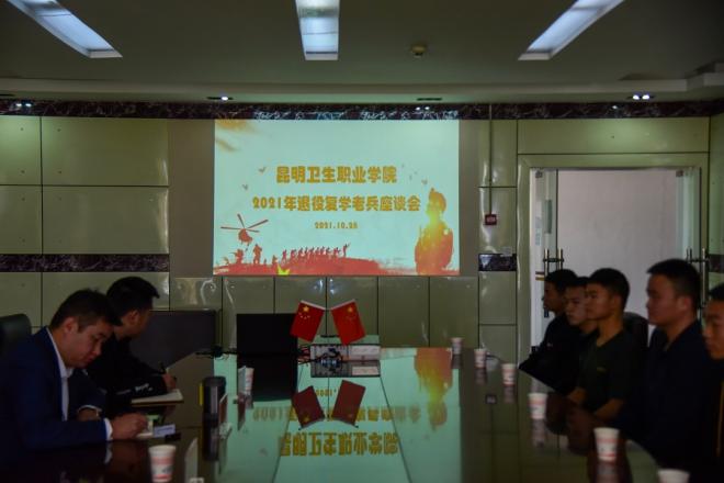 为深入贯彻落实云南省征兵办公室、省教育厅、省退役军人事务局《关于开展迎接退伍老兵返乡系列活动通知》和昆明市征兵办《关于落实退役老兵“六个一”活动》的通知精神。10月28日下午3:30,KY开元人民武装部、大学生工作部在学院行政楼五楼会议室组织举办2021年退役复学老兵座谈会。
