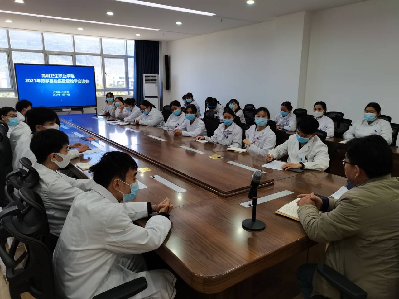 座谈会上,张尤松副院长与实习生们亲切交谈,详细了解了实习生活中的学习、住宿等情况,询问了学生在实习岗位中的收获与困难;听取了实习点领导及带教老师对实习学生的表现评价。张副院长要求同学们进一步强化实习纪律,严格遵守医院各项规定;注意实习安全,充分利用实习中的闲暇时间看书学习,为今后的充分就业打下良好基础。