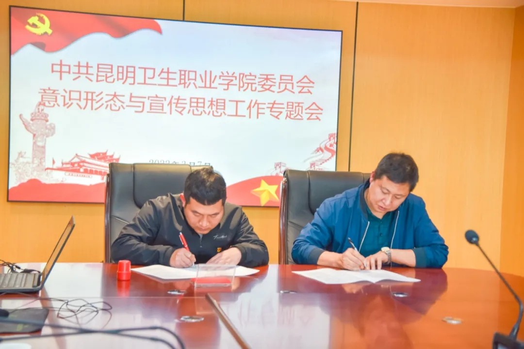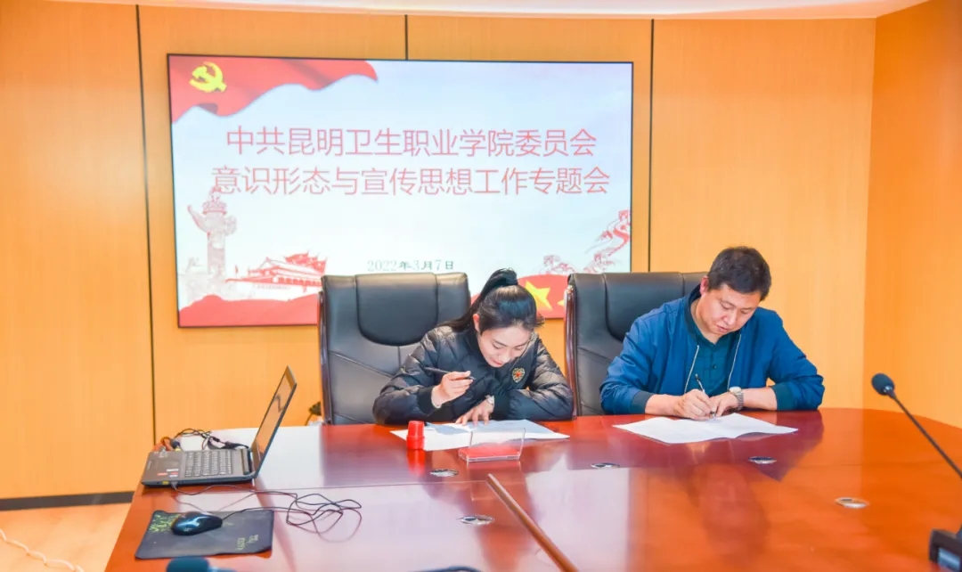 王斌部长对2022年意识形态和宣传思想工作提出了具体要求。学院上下要紧紧围绕迎接宣传贯彻党的二十大这一主线,以习近平新时代中国特色社会主义思想为指导,守正创新,真抓实干,不断推动宣传工作取得新进展、实现新突破,为加快推动学院高质量发展提供坚强思想保证和强大精神力量。一要持之以恒抓好理论武装工作,持续推进党史学习教育,推动理论学习教育常态化、制度化、长效化、规范化。二要坚定不移守好意识形态阵地,关注“疫情防控、高校毕业生就业、学生安全、师德师风、学生价值引领”等教育舆情热点,及时有效处置意识形态领域问题,牢牢掌握意识形态工作领导权和主动权。三要进一步加大对外宣传工作力度,提升内外宣传合力。通过创新对外宣传工作机制、精心策划宣传推介、广泛动员师生参与等方式,大力宣传学院的工作特色和亮点,紧跟时代脉搏,讲好昆卫故事,提升学院在主流媒体的宣传频次和质量,全方位、多角度展示学院良好精神风貌,提升学院的美誉度、知名度。