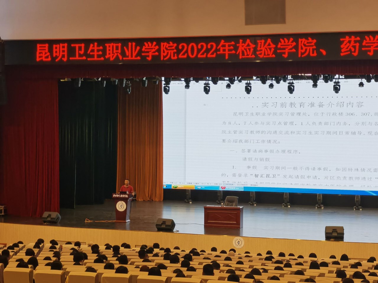 6月8日始,学校实习管理处在晋宁校区学术报告厅,分别对中医学院、护理学院、临床学院、口腔学院、影像学院、检验学院、药学院学生组织开展了近一个月的实习前教育培训,不断加强学生安全教育,提高学生安全意识。