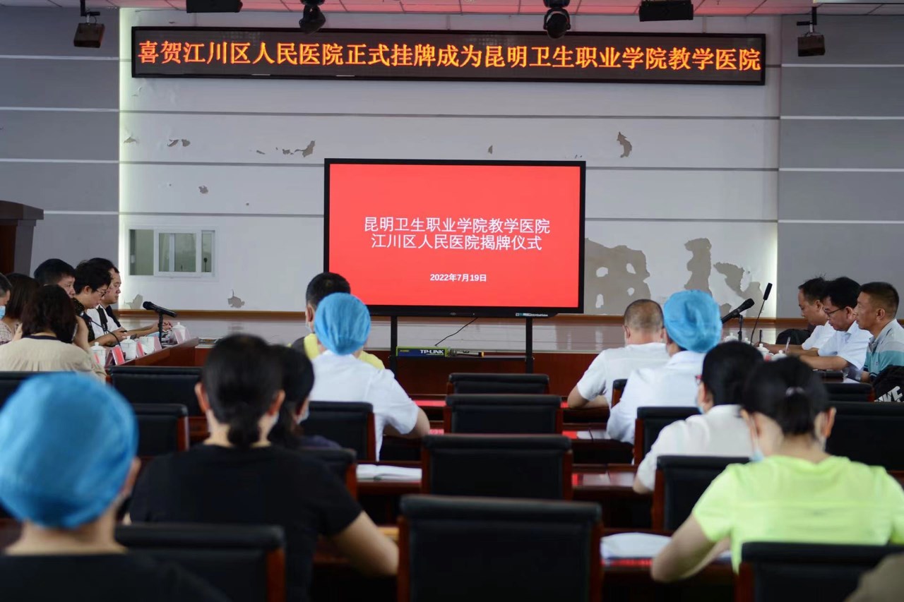 KY开元集团官网入口实习管理处颜慧林副处长宣读了云南省教育厅、云南省卫生健康委员会发布的《关于公布高职院校新增教学医院名单》的批复。宣布江川区人民医院正式成为KY开元集团官网入口教学医院。