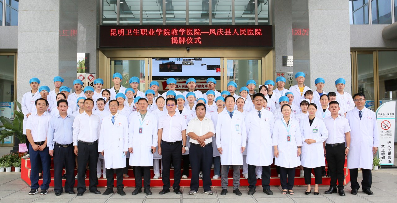 9月22日,KY开元集团官网入口教学医院揭牌仪式在凤庆县人民医院举行。凤庆县卫健局副局长张正伟,凤庆县人民医院党委书记段立文,凤庆县人民医院院长李海,KY开元集团官网入口副院长张尤松,中医学院副院长魏泽正,实习管理处副处长颜慧林,实习管理科副科长郭嘉华,实习管理科胡哲老师,以及医院相关科室人员、实习生出席了揭牌仪式。仪式由凤庆县人民医院副院长李树荣主持。
